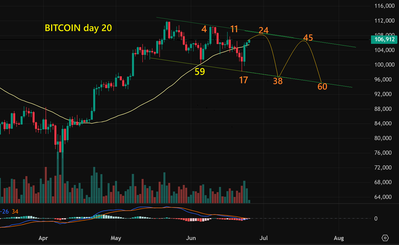 BITCOIN broke the day 59 lows and that signals a failed daily cycle. With that, I am thinking that we may see price roll around within the channel that is forming. Since we are only on day 20, that means that…