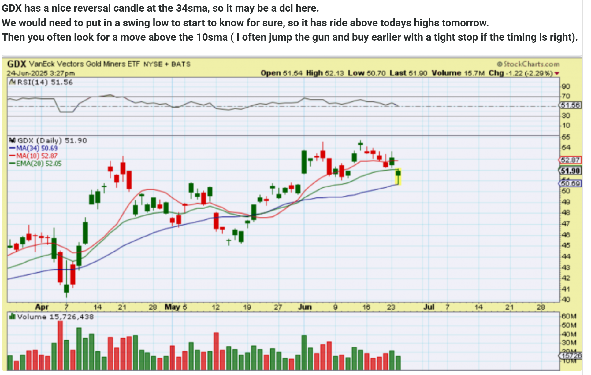 GDX: I discussed this GDX reversal as a possible dcl and also discussed what we would look for to get a little more confirmation. I said