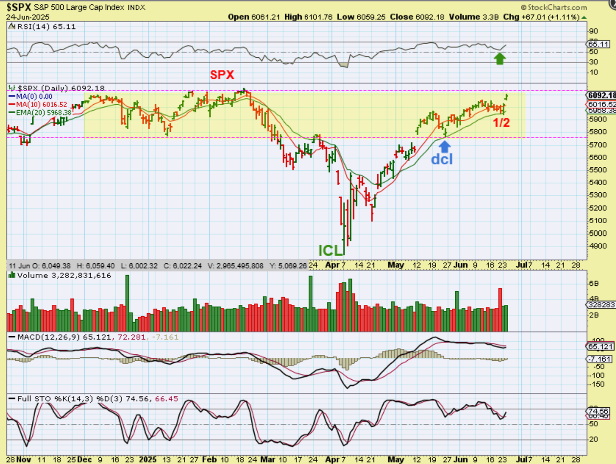 The NASDAQ is just about at the all-time highs and that tag of the 20 ema was a nice reversal candle. Despite all of the geopolitical unrest in the world, the Bulls remain firmly in control. This is a very nice looking chart at this point. Yesterday & recently I pointed out charts like AAOI, BBAI, IONQ, TSLA, LMND, RKLB, NVDA, GOOG, NFLX, AFRM, POET, SOUN, RGTI, etc to show the bullish set ups. If you grabbed that BBAI stock from yesterdays report that has been in a base…
