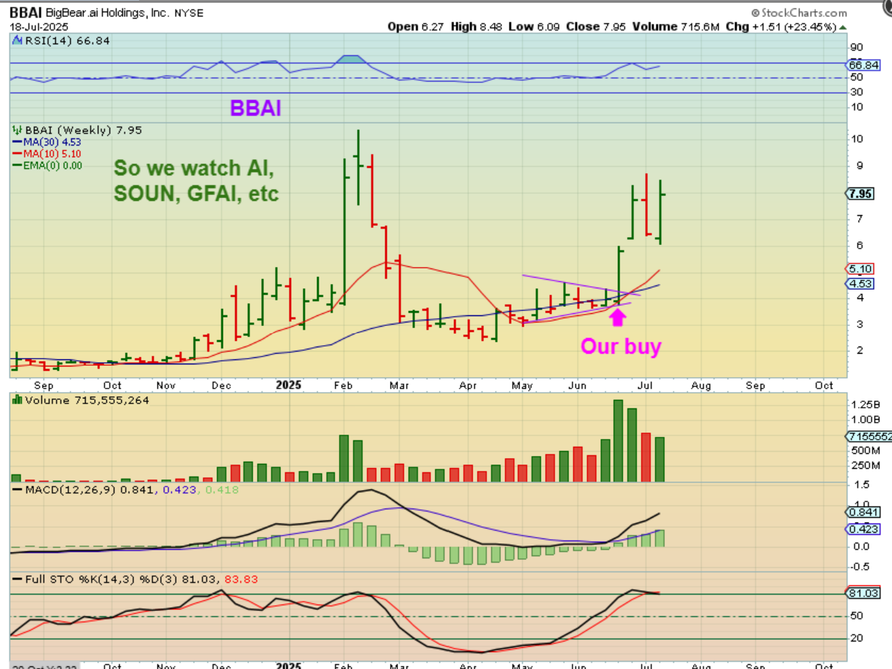 BBAI WEEKLY– It has strongly rallied up 100% and yes, this can continue higher, but what about an ‘AI” Laggers? I have mentioned SOUN, GFAI, and ‘AI’…