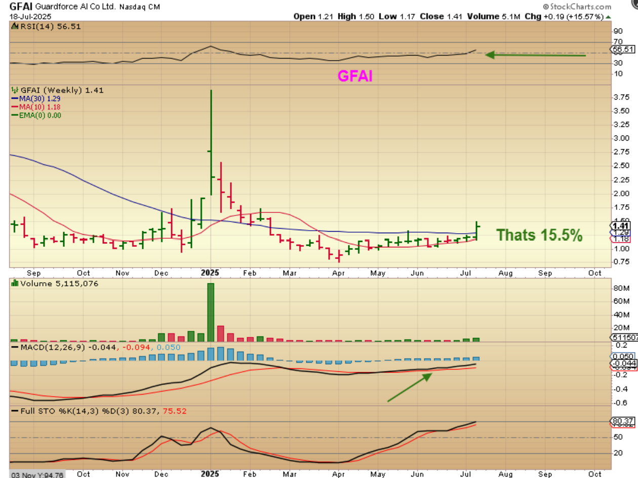 GFAI popped 15% this week, with some of us on board. You can see that similar to BBAI in June, this has great upside potential with a base or consolidation like this.