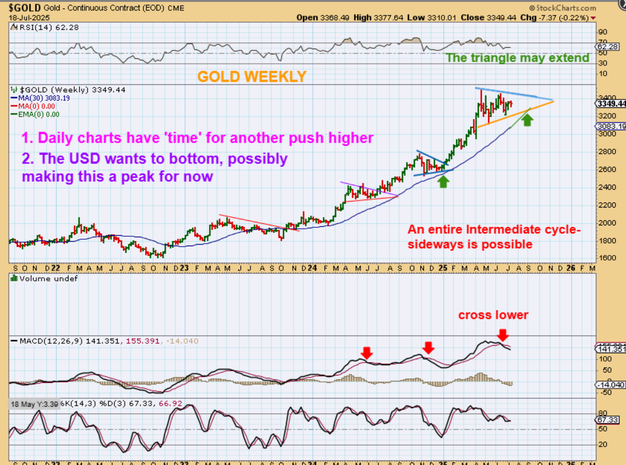 This weekend report considers cycle timing as a timing guide, but also uses technical analysis, and observations based on chart patterns to gain further perspective. Enjoy!