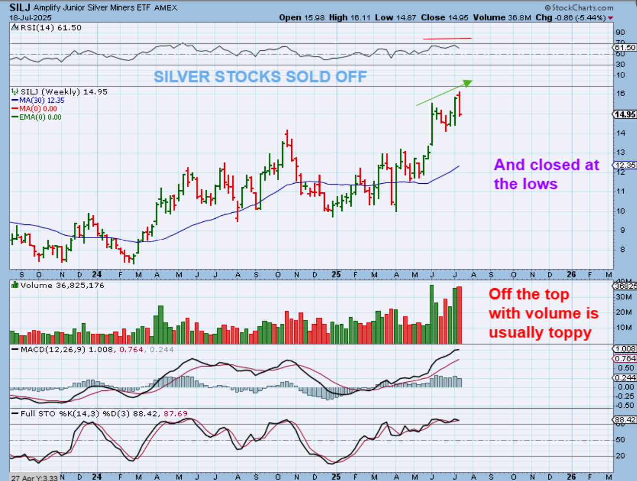 Silver stocks, however, closed at the lows, and that may be a warning sign for us.