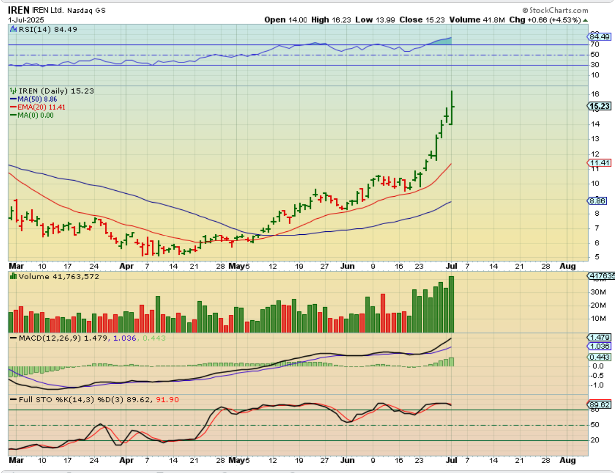 This rocket ship blasted off while Bitcoin was chopping and even dropping lower. Buyers piled in and IREN has moved higher for 9 straight days. Next…