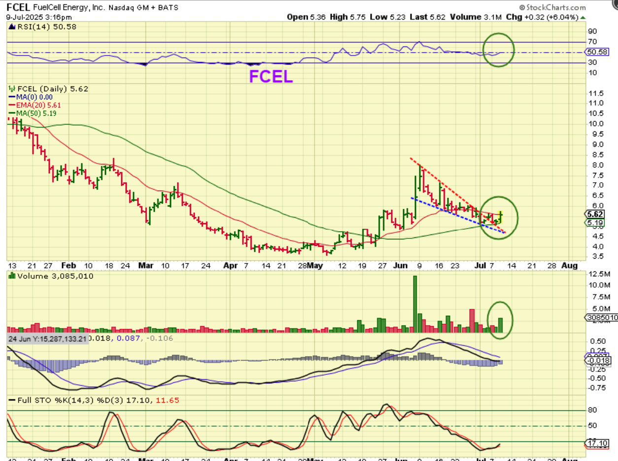 I want to go back to the clean energy sector. We talked about PLUG, BLDP, FCEL, CLNE, CHPT, etc in the recent past. The set ups and bases in this area do look bullish, so I mentioned it in the commenting section and did buy on Wednesday. I wrote this in the commenting section after mentioning it earlier too, with a FCEL bullish set up..