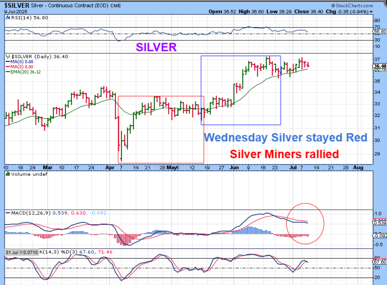SILVER #1 – Silver was Red Wednesday, but Silver stocks reversed and made good gains.