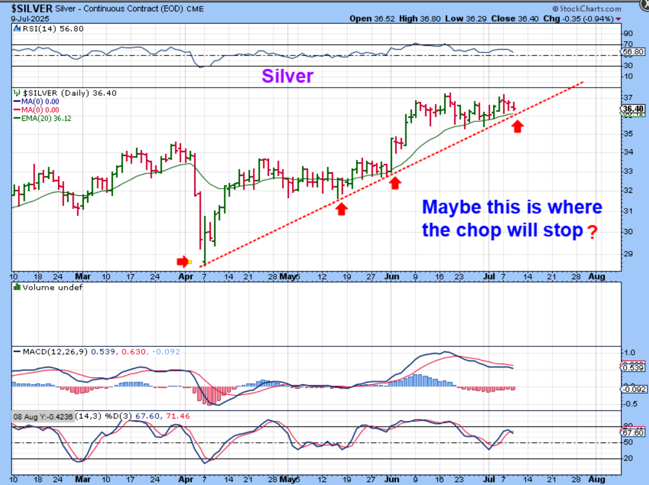SILVER #2 – Silver is also at the uptrend line. Please read the chart.