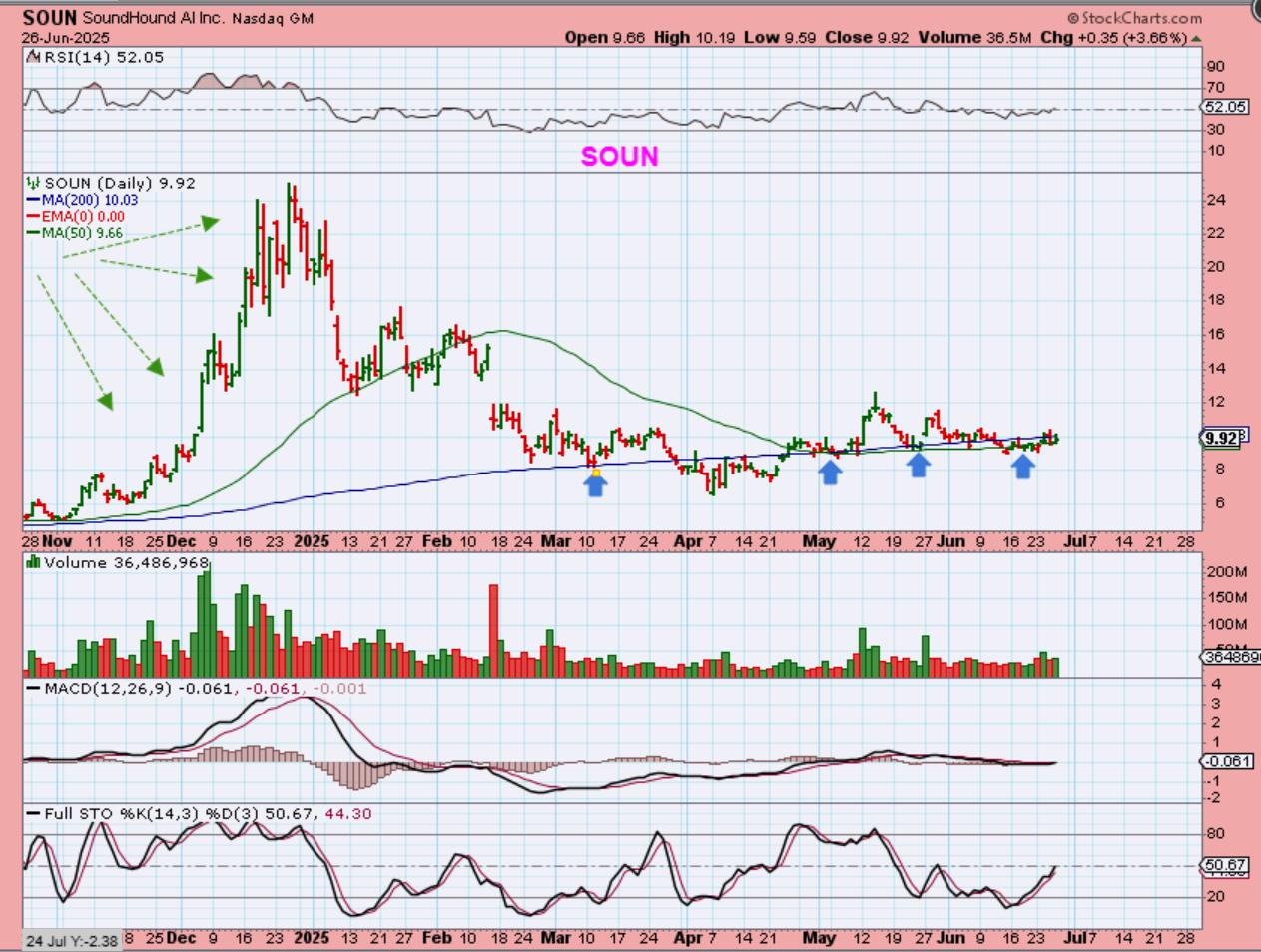 Soun then popped higher to $13plus 7 days ago and has dropped back to the 200sma & 50sma, where it reversed higher. It is still a buy.