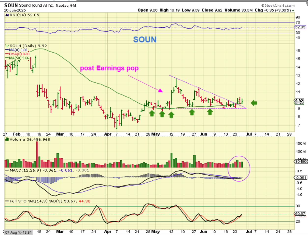 I pointed out SOUN in late June and early July. The volume kept popping on up days.