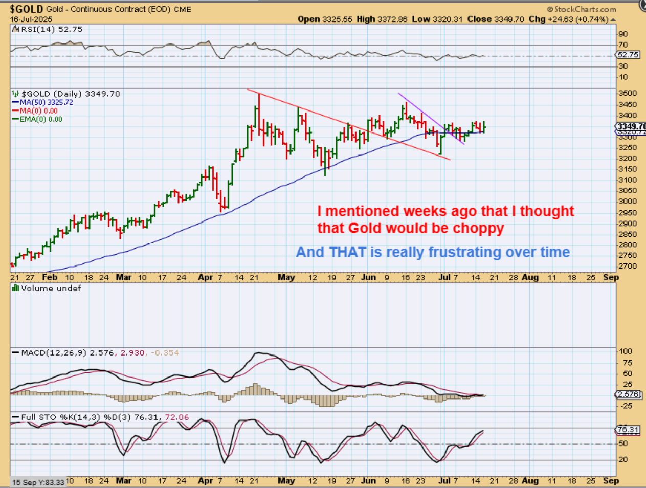 GOLD tried to move higher, but Gold has been very choppy (As expected, right?). Frustrating.