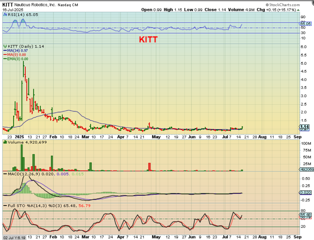 KITT (also Robotics) – I also mentioned KITT in the comments yesterday, but I didn’t post a chart along with it, so here is the chart after the close. Seems to me that a stock like this could easily double or triple (or more) if it gets going.