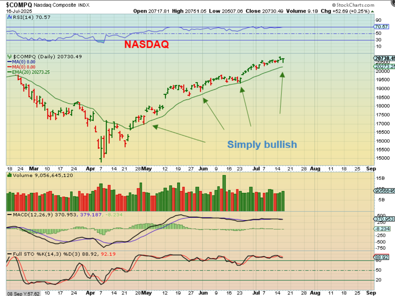 The Nasdaq really does NOT look like a dcl, it is simply a very strong bull run, never breaking below the 20 ema. Most of my bullish stocks on my watchlists (RKLB, AAOI, ENVX, etc) are really excellent too, so just enjoy the bull run!