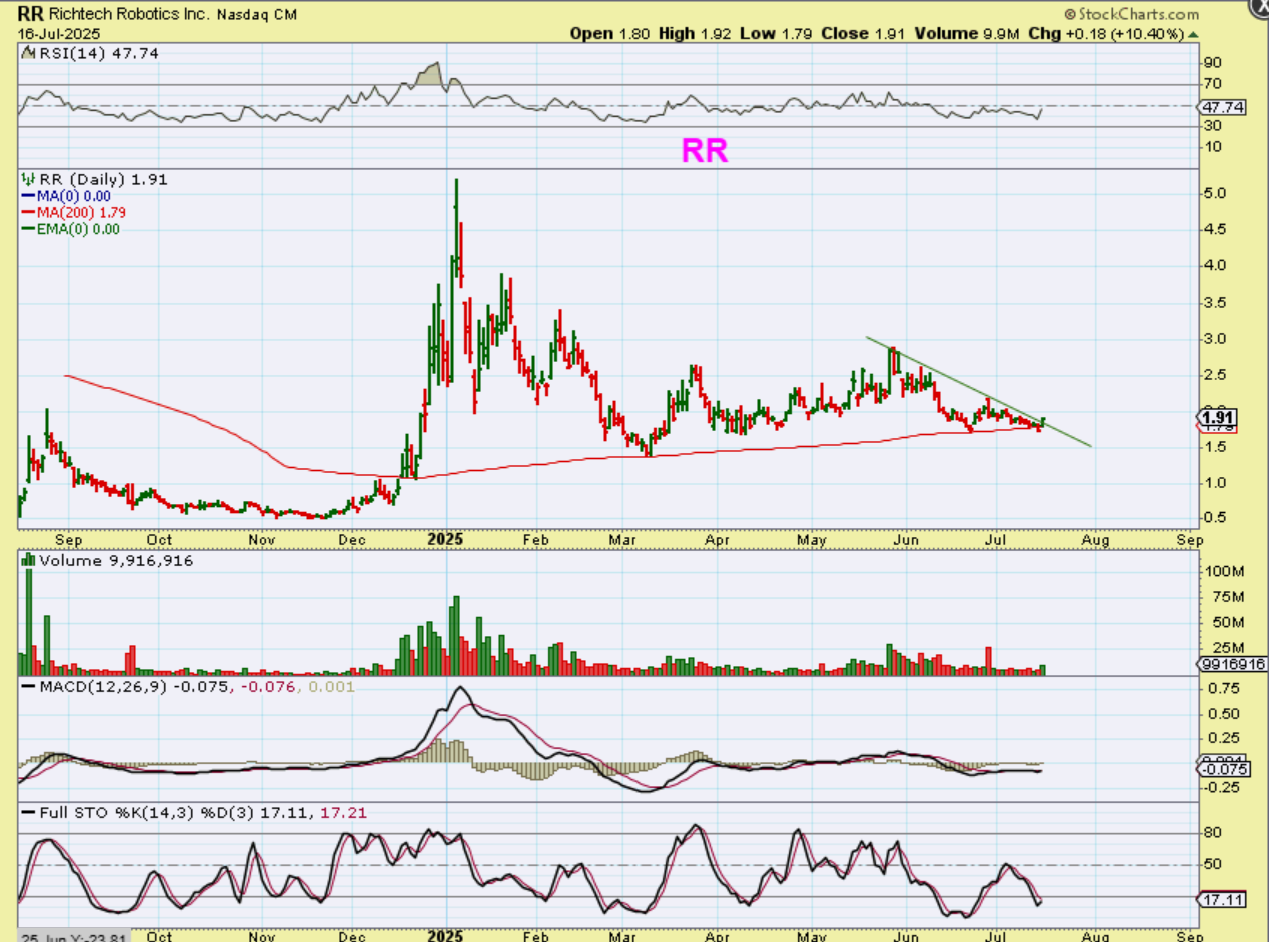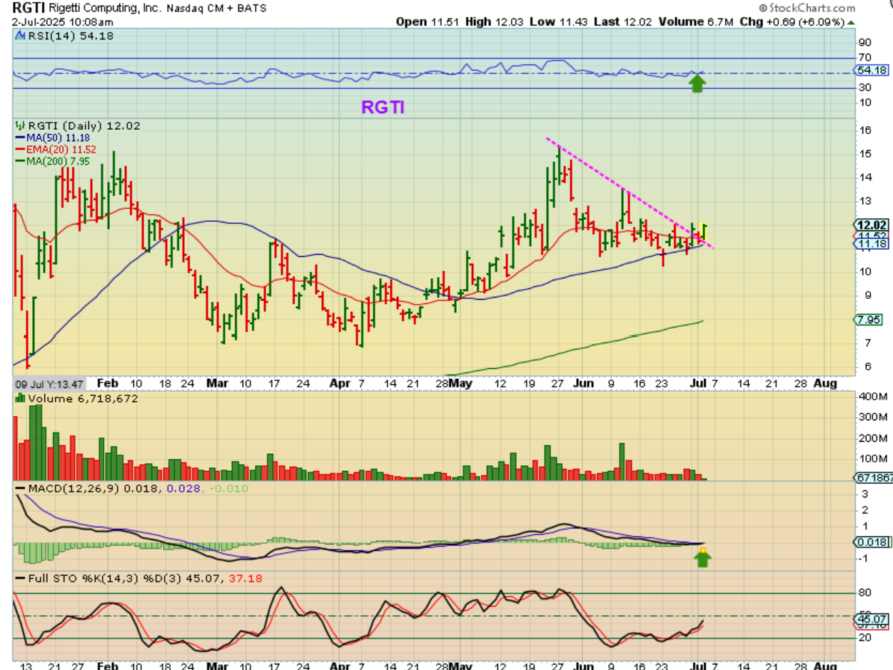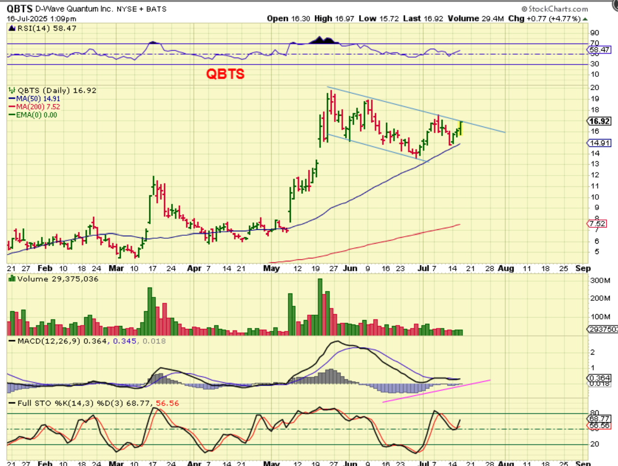 I posted this chart of QBTS yesterday, because it is at resistance, but it also could break out. You can keep an eye on it for a break of the downtrend line, but again, you may own it already from my Early July coverage.