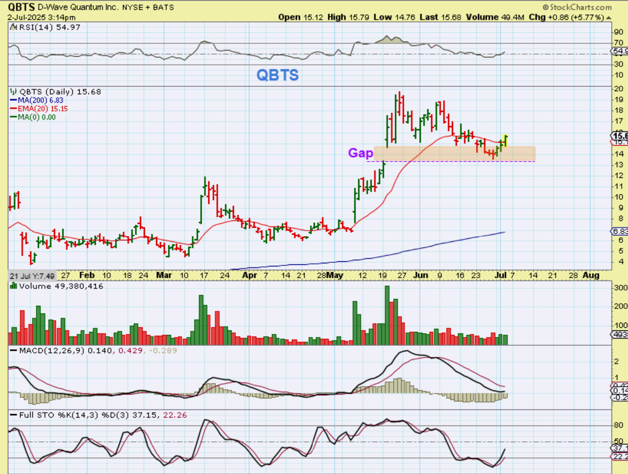 QBTS was at support with this gap fill in July and I pointed it out then in early July, so you may already be in it around $13 to $15…