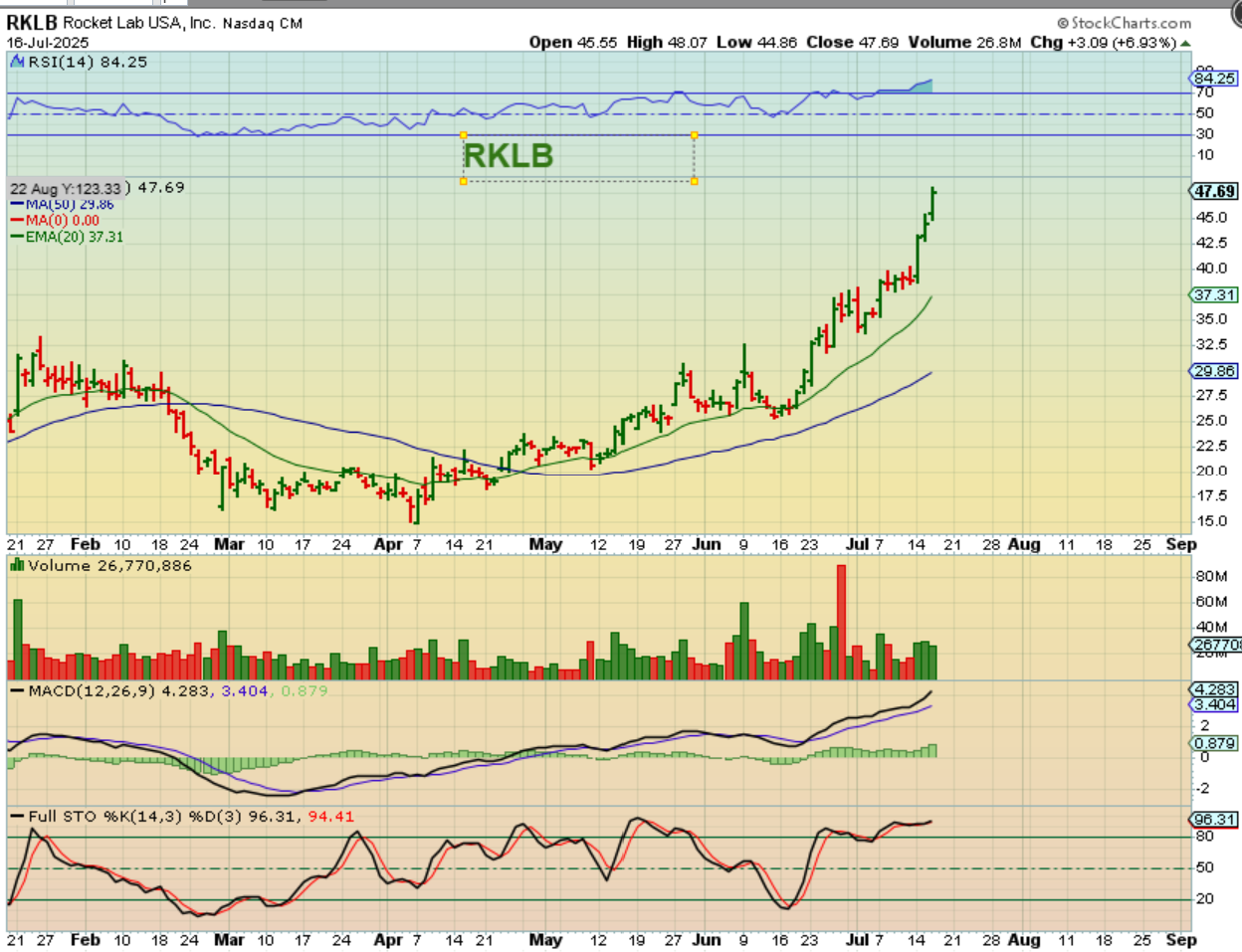 RKLB (See also AAOI, ENVX, NVDA, etc) was one of my favorites before the crash, and look at the rally since just the middle of June. 100% 🙂 My position was much smaller than it should have been! I reduced during the choppy middle expecting a dcl.