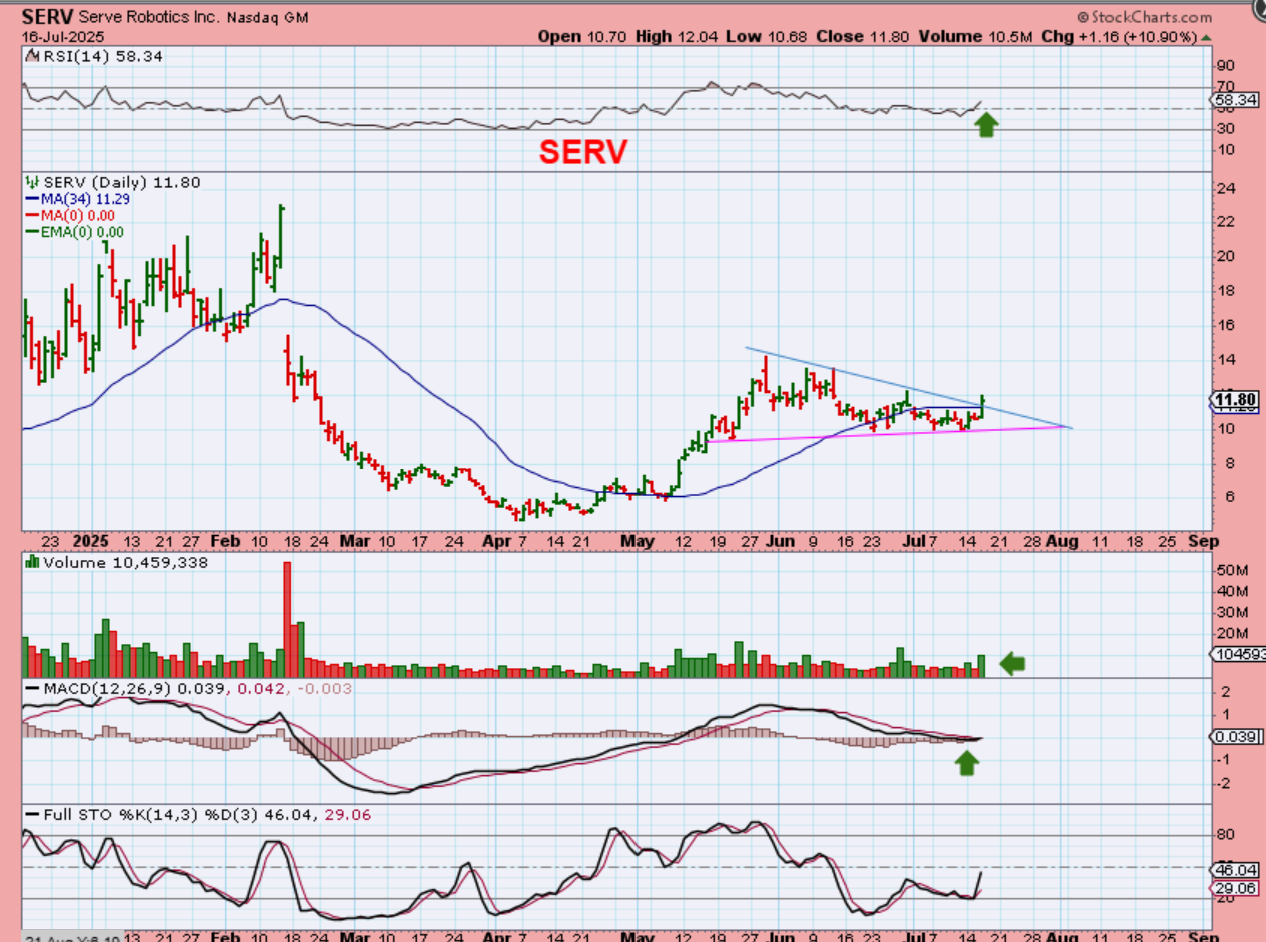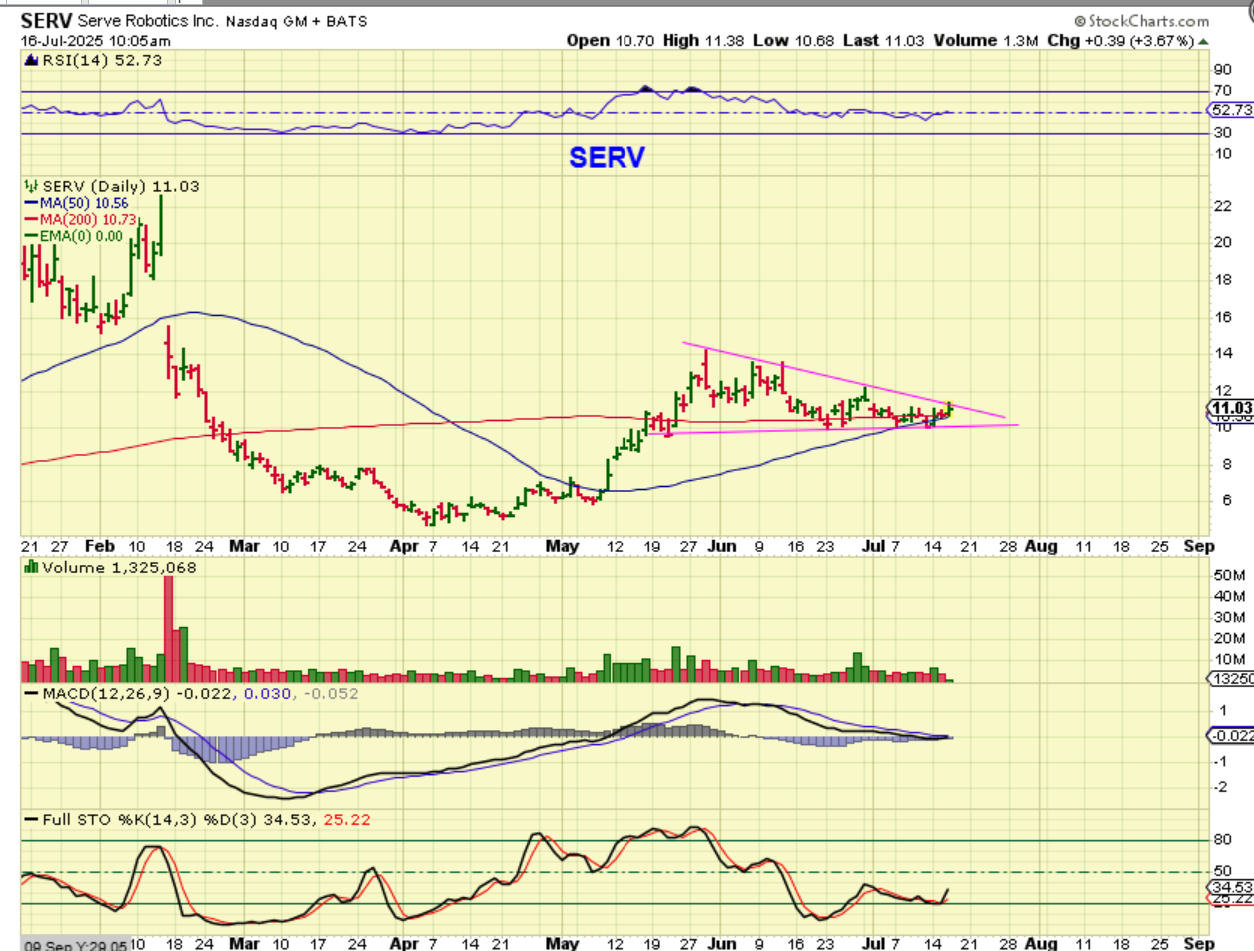 SERV (Robotics) – I posted this Robotics stock yesterday at 10 a.m. in the comments, as it looked ready to go. I also bought it.