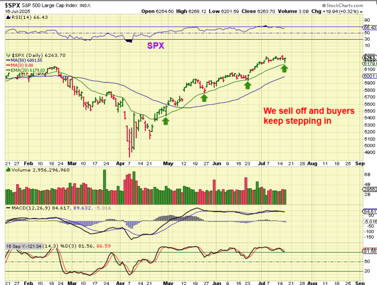 SPX – The General Markets dipped lower or sold off, but then buyers stepped in AGAIN and kept it from losing the 20ema. We are due for a dcl, so IS THIS the dcl?