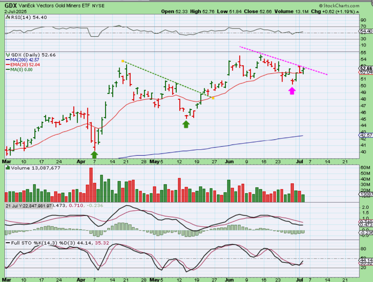 GDX looks good, but let’s look at a couple of Miners…