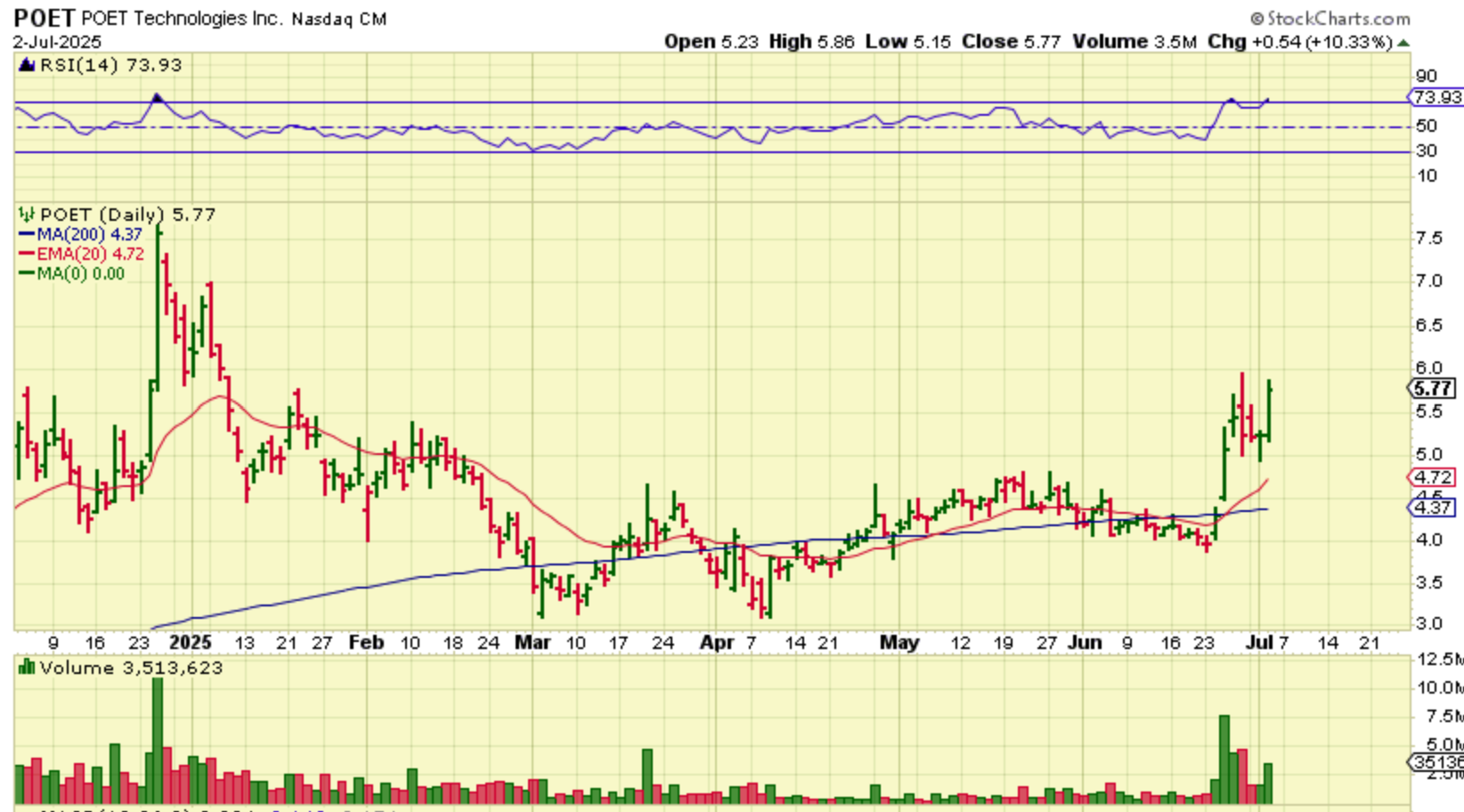 POET Did you buy or keep an eye on POET, RKLB, AAOI, etc ? They are running. Poet is up 50% in days and up 10% yesterday as a continuation.