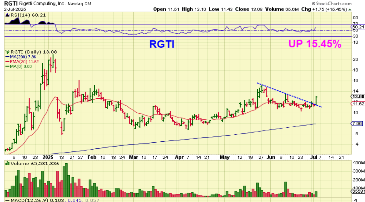 RGTI closed up over 15%. This can work its way up to former highs if the markets remain bullish and that’s a 100% move plus.