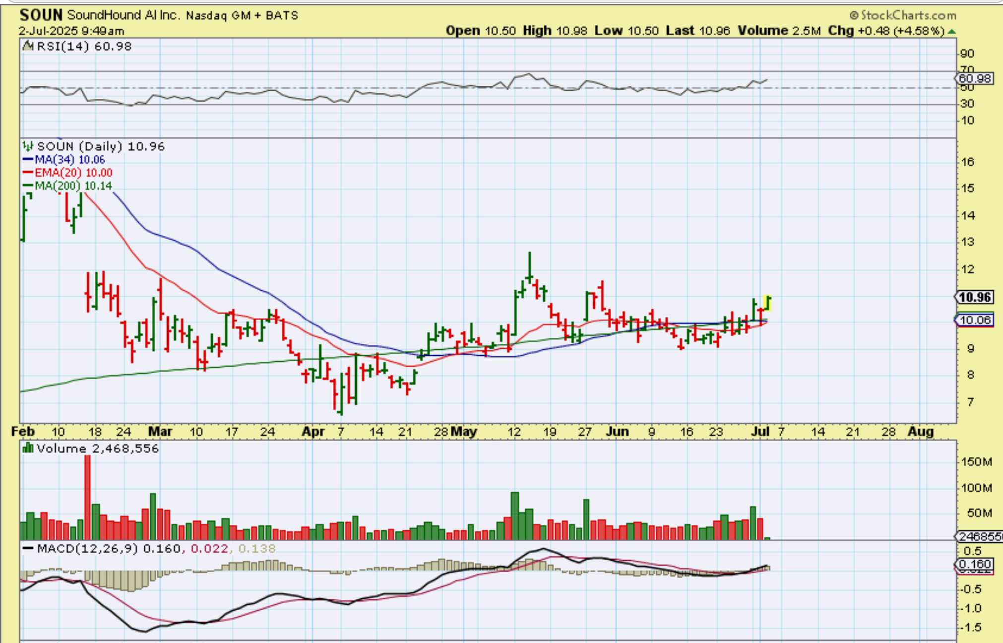 SOUN looks like it has good potential if it starts to run to prior highs like BBAI. It may be choppy, but so was BBAI.