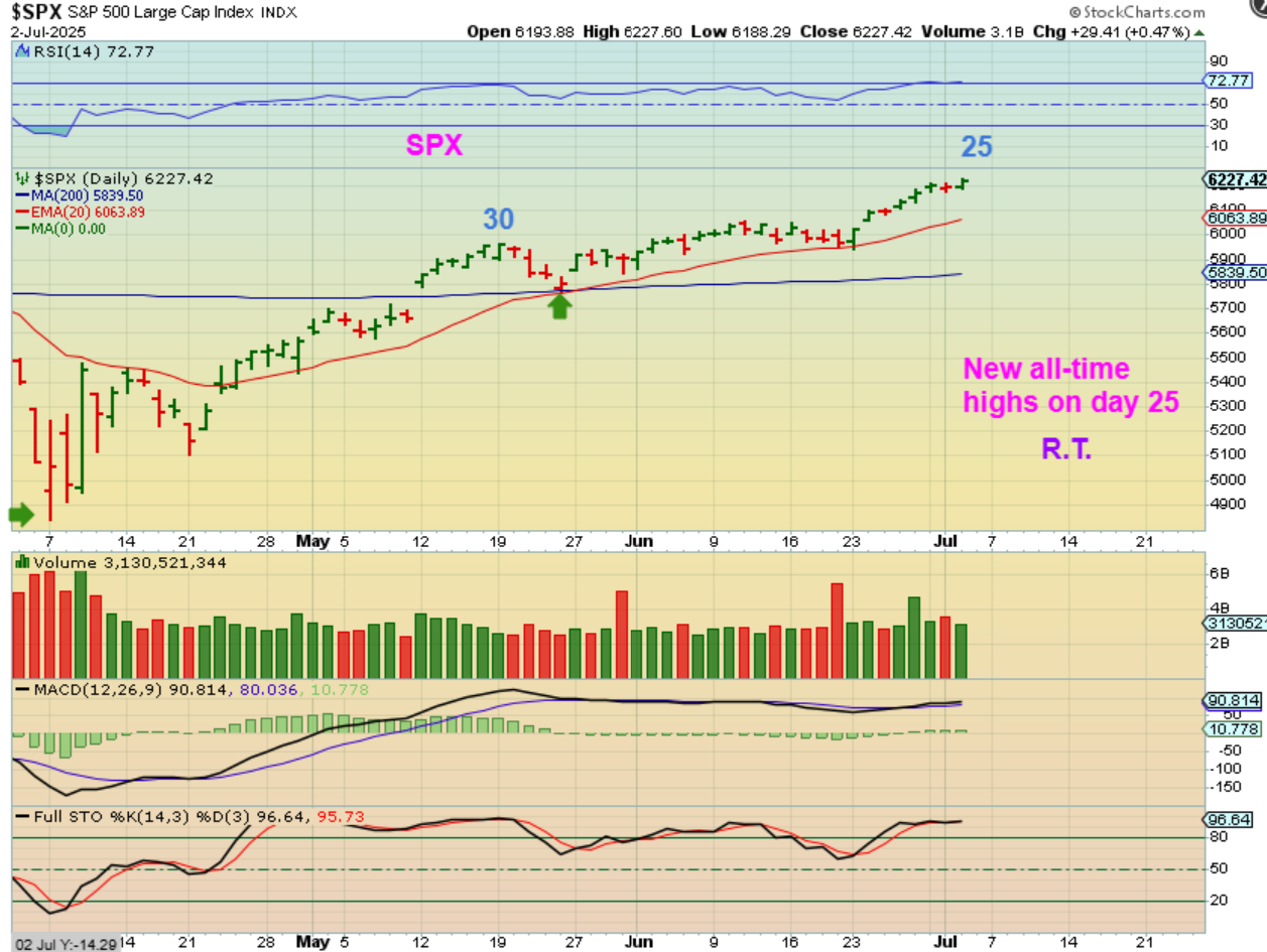 SPX – We have a peak on day 25 now and that will usually become R.T. and the General Markets remains quite bullish.