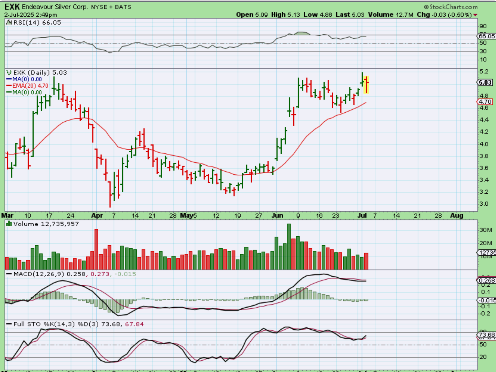 EXK dropped and recovered too, it closed up 3 cents (this was posted as we approached the final hr of trading).