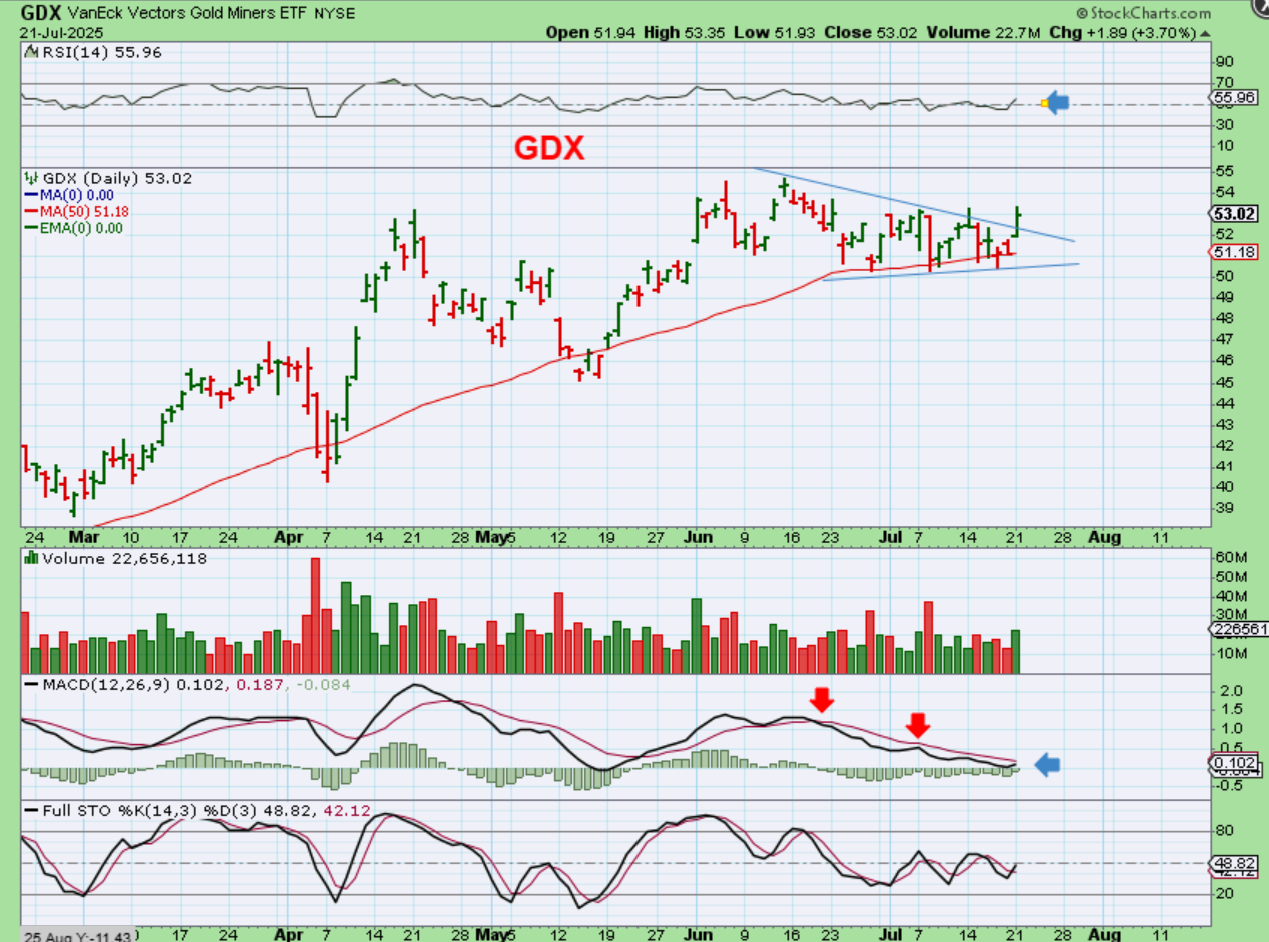 GDX is breaking from a downtrend and it didn’t quite stay up at the highs, but it was close. Next…