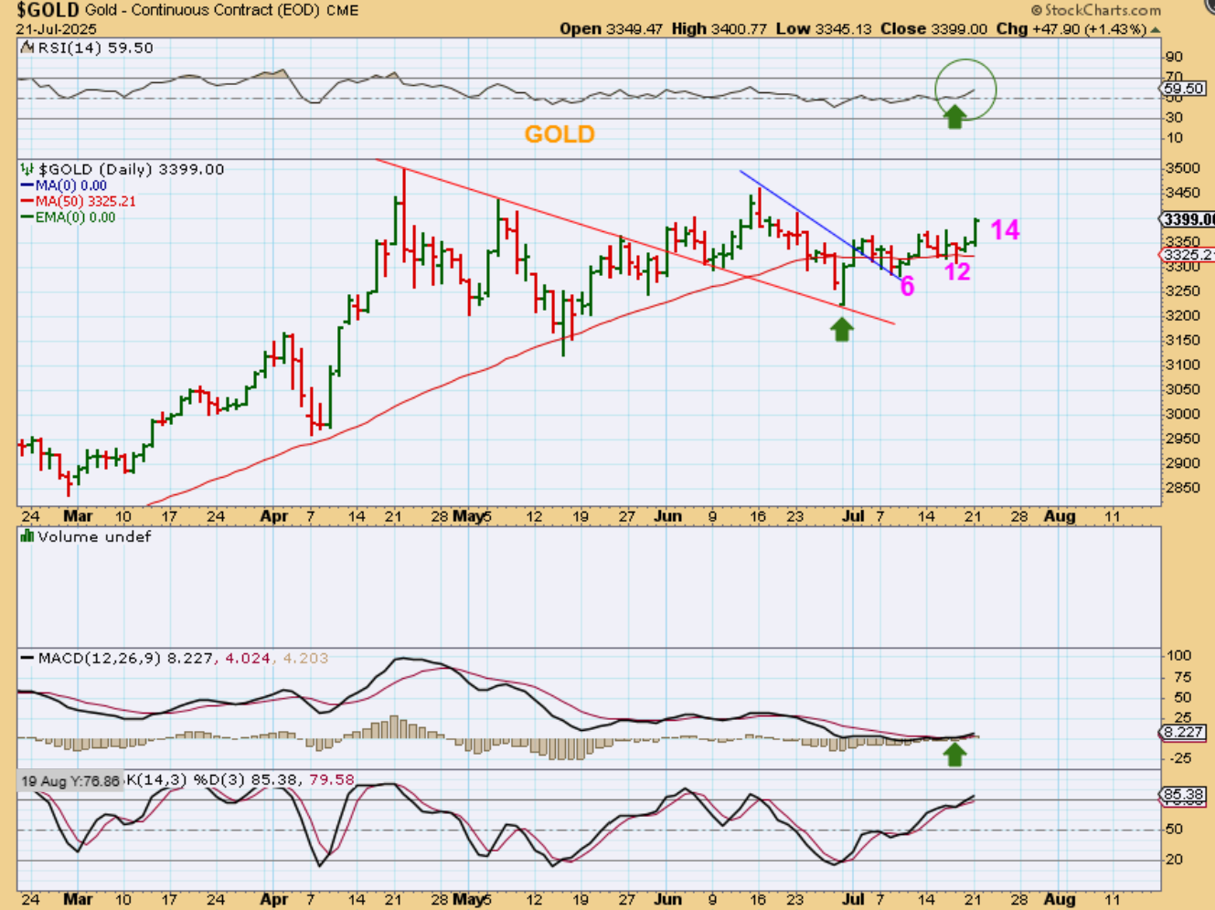 GOLD popped and I want you to note that Gold closed near the highs of the daily cycle and the highs of the day. This is now a peak on day 14 and could be R.T. if this keeps up. Again, GOLD CLOSED NEAR THE HIGHS.