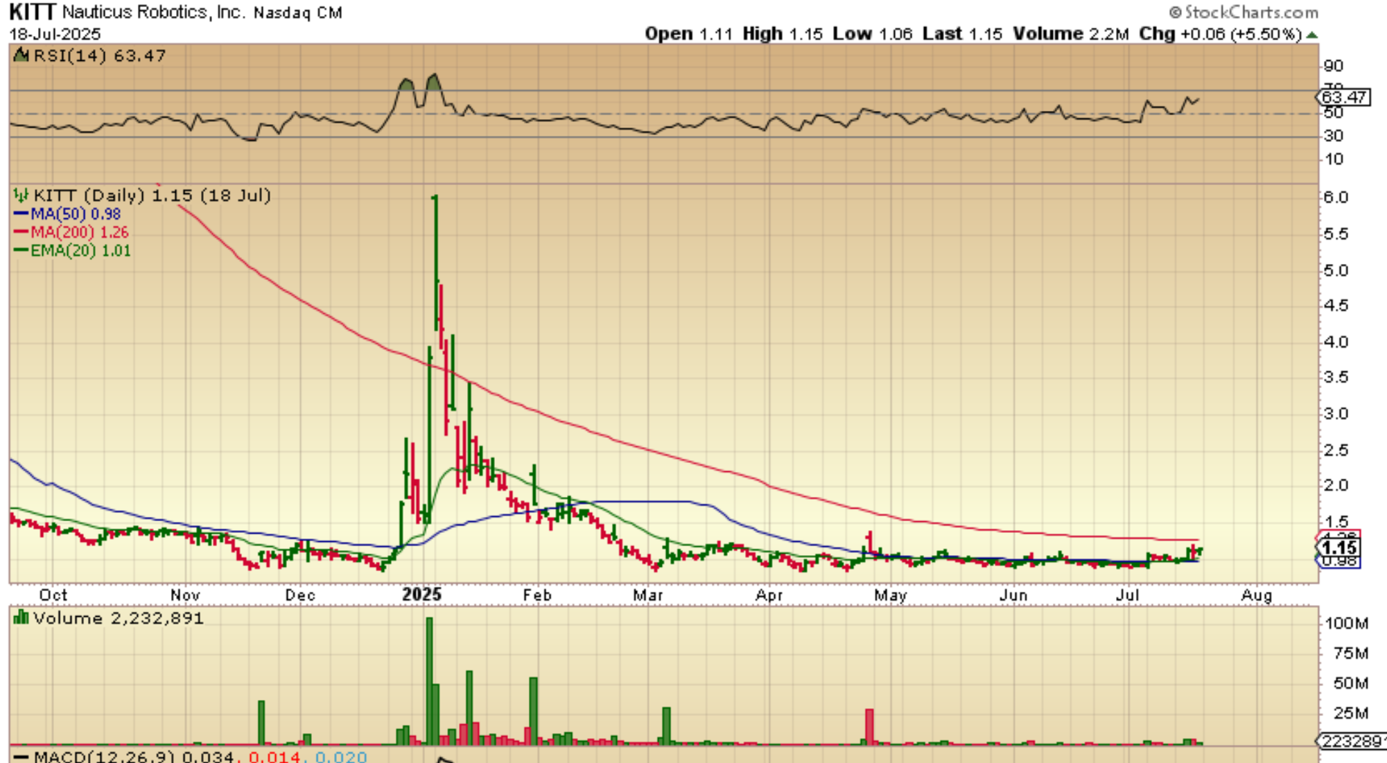 KITT – I still like this set up too, but this chart is from Friday. IT dropped back tot he 50sma yesterday and is around $1.04, but this chop looks constructive if we have a dcl in the general markets.