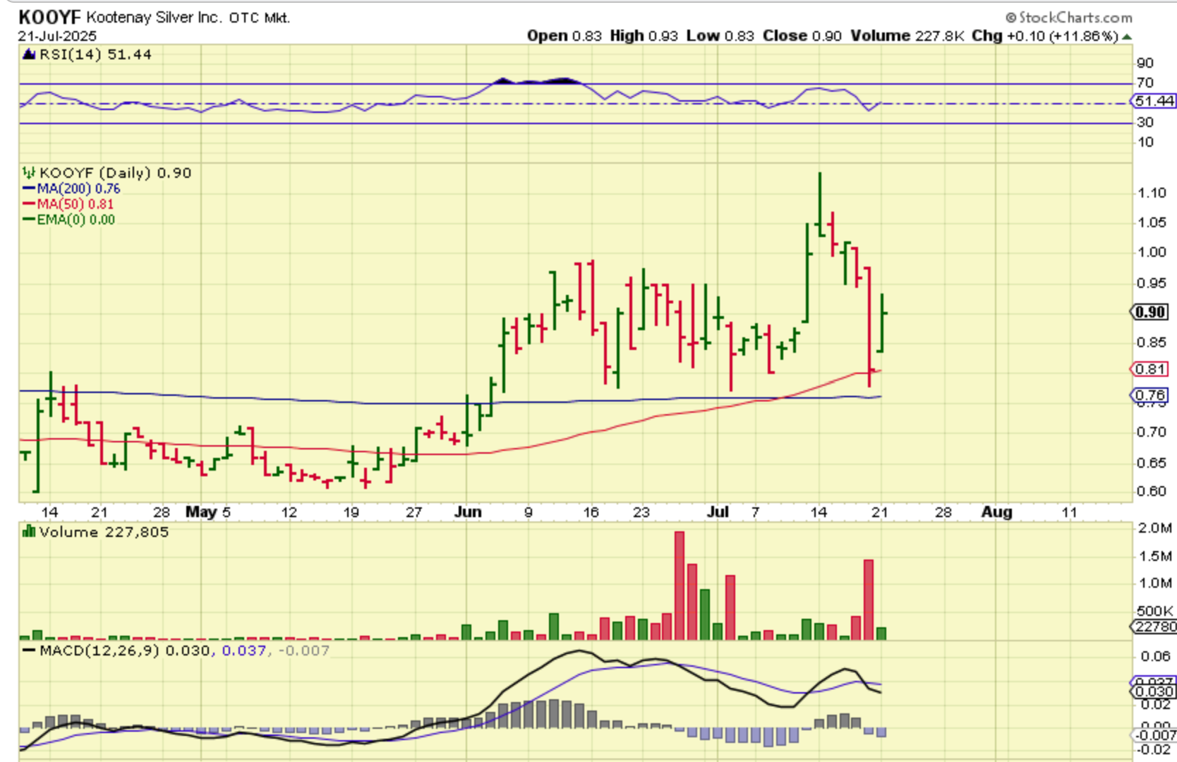 RR ran up to the resistance of the 50sma Friday, shown here. RR broke out above the 50sm and then pulled back under it yesterday, so is it ok?