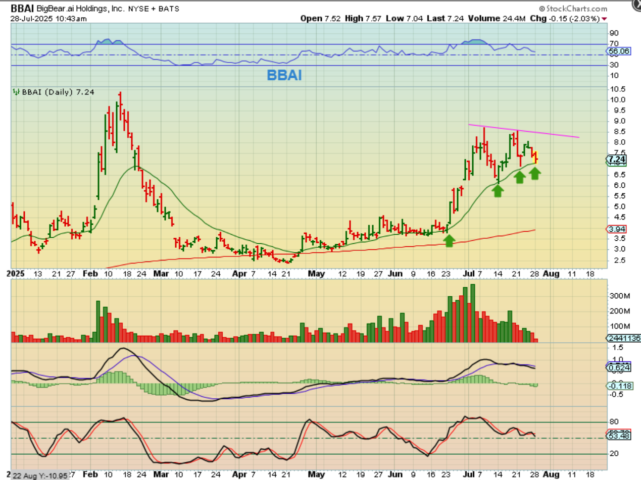 BBAI dropped but bounced at the 20 ema. It is a low risk entry for a trade, since a tight stop can be placed below that 20 ema.