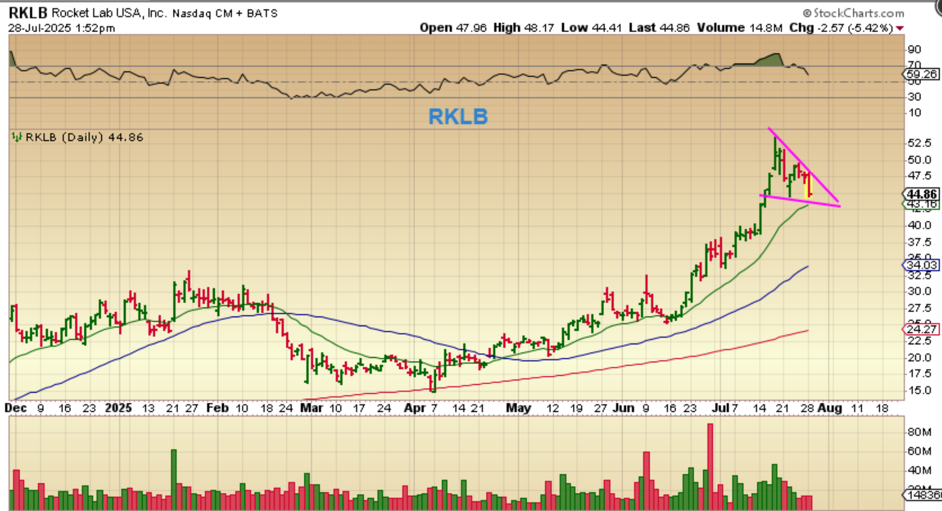 RKLB dropped, but this may be a drop to support also. We’ll see if this bullish looking wegde can breakout upside or not (again, Fed is Wednesday).