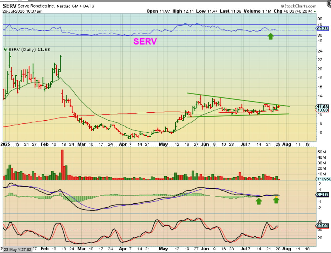 SERV (robotics) is a good-looking set up to me. That is the 200 & the 50sma. It could break out or it could dip back to the lower level, so put it on a watchlist if you are interested in buying a dip or breakout.