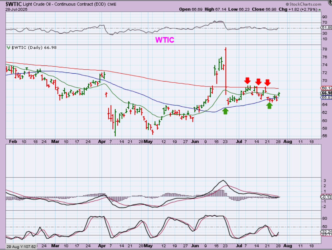 WTIC – Oil was higher and remains pinched between the 50 & 200sma. I mentioned that I think Oil may want to move higher, because the Oil stocks look bullish. Well, …
