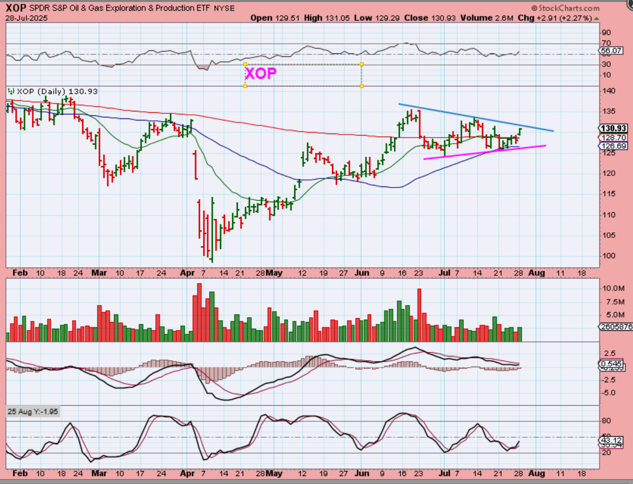 XOP – Oil stocks do look bullish, and this is a nice-looking set up too. Check your Oil stock watchlist, to see GUSH (leveraged) VLO, NOG, VET, PUMP, APA, etc etc. as mentioned in last weeks report.