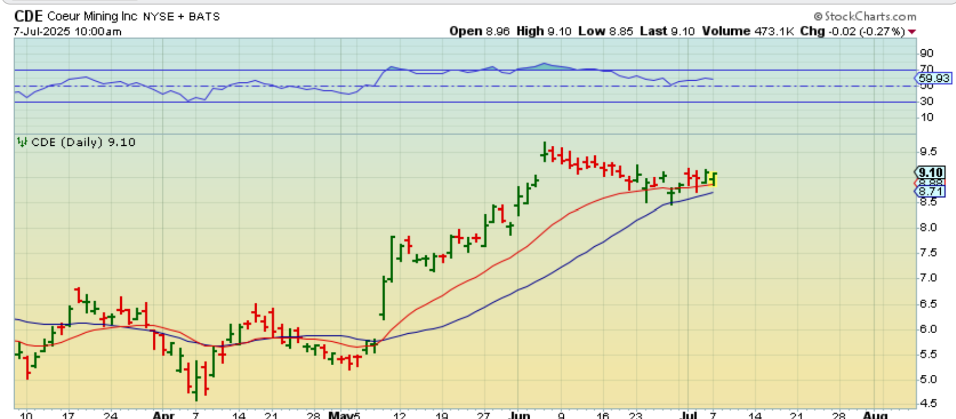 CDE closed up 4%, so buying there gave you 4%, but there is a good chance that these move higher this week too.