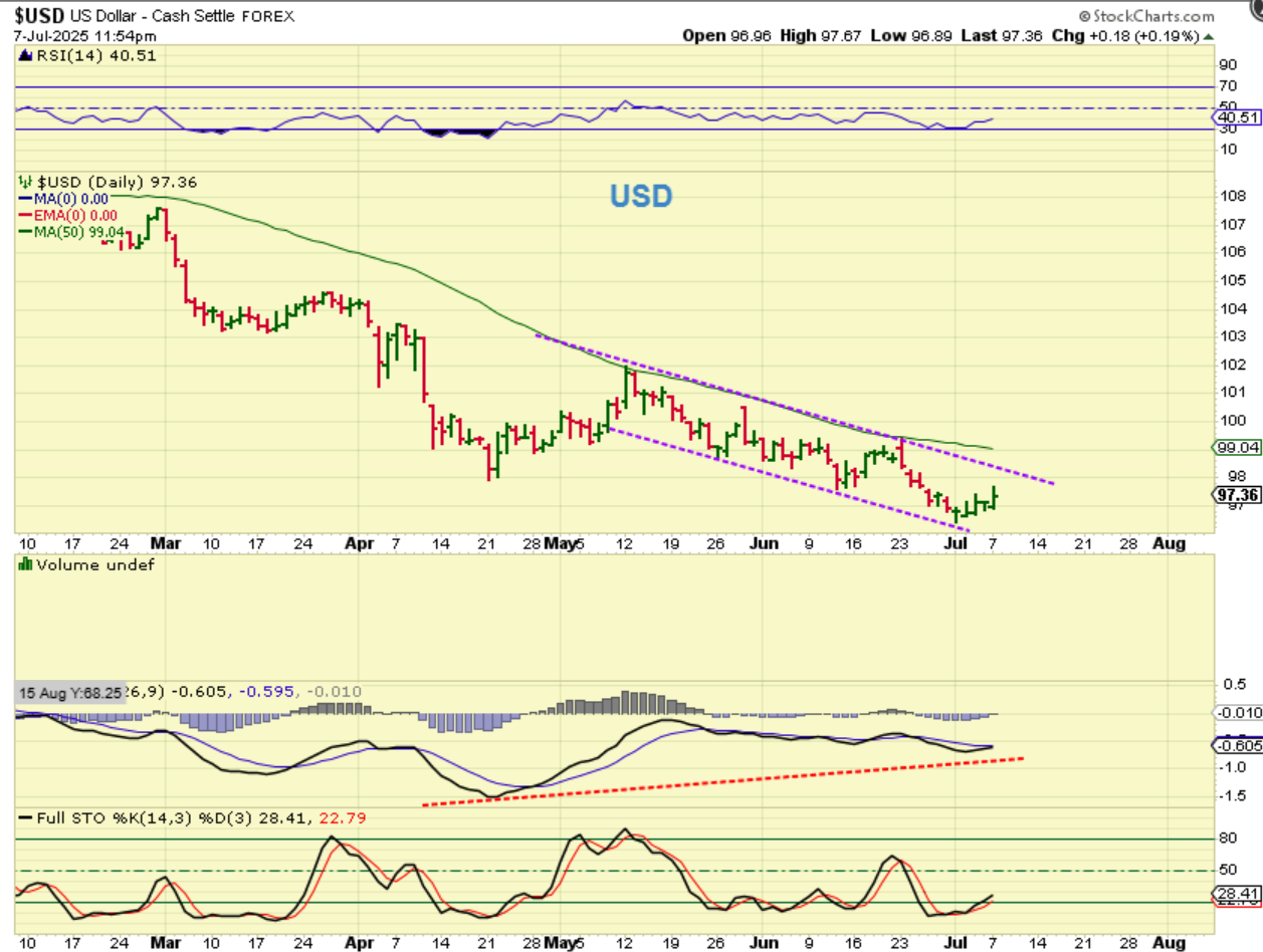 THE USD is in a downward sloping channel, but I do see pretty strong divergence at the newer lows. That said, this should still be in a failed daily cycle and the bounce really should roll over (possibly after a tag of the upper trendline). Will a USD bounce affect Gold? Maybe, but they have moved higher together in December 2024.