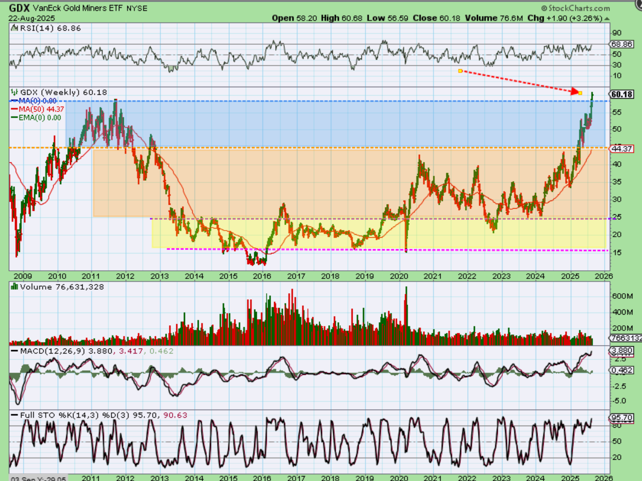GDX WEEKLY – This recent rally in GDX has finally pushed it to new all-time highs.