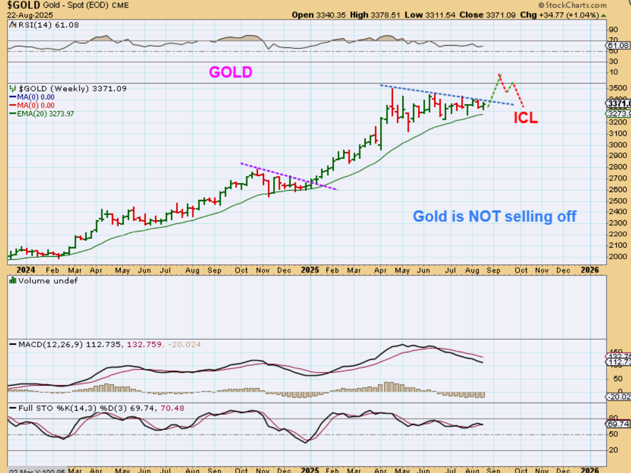 2. After that 10 day rally in April, Gold was L.T. and it dropped in an a-b-c manner, so this is only 3 months ahead of the ICL and it can (& might) run like it did in April.