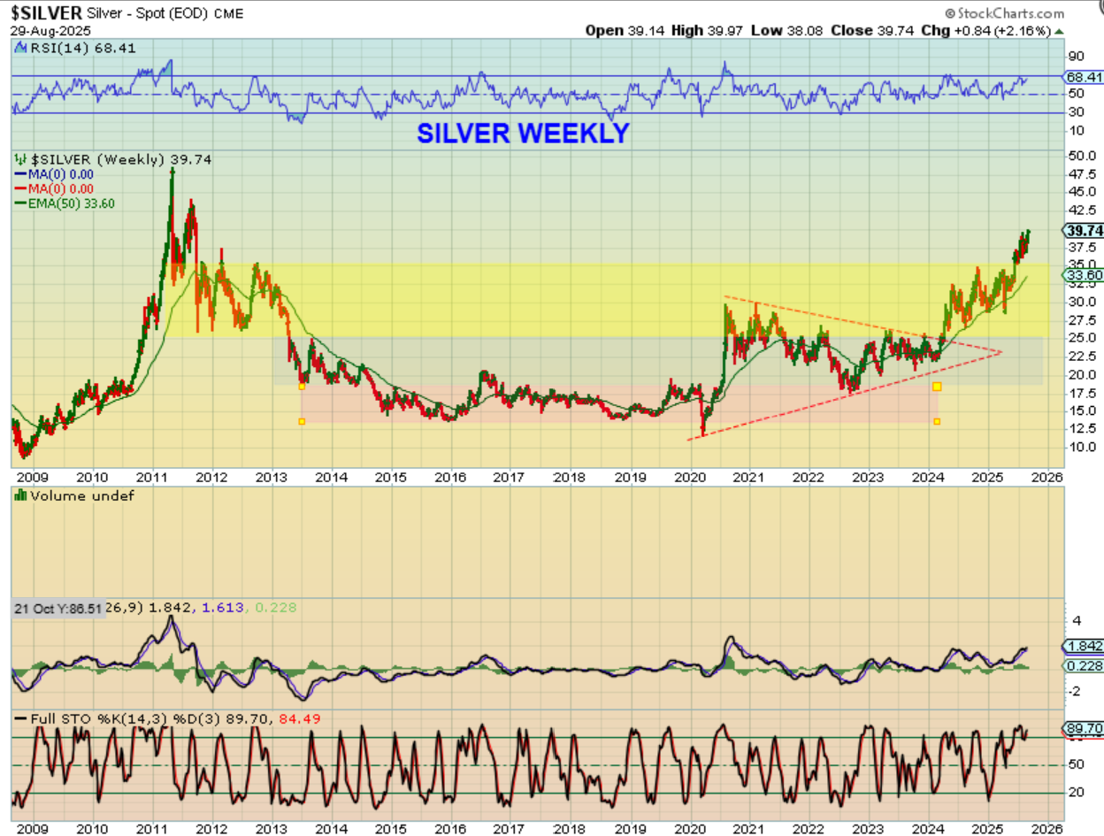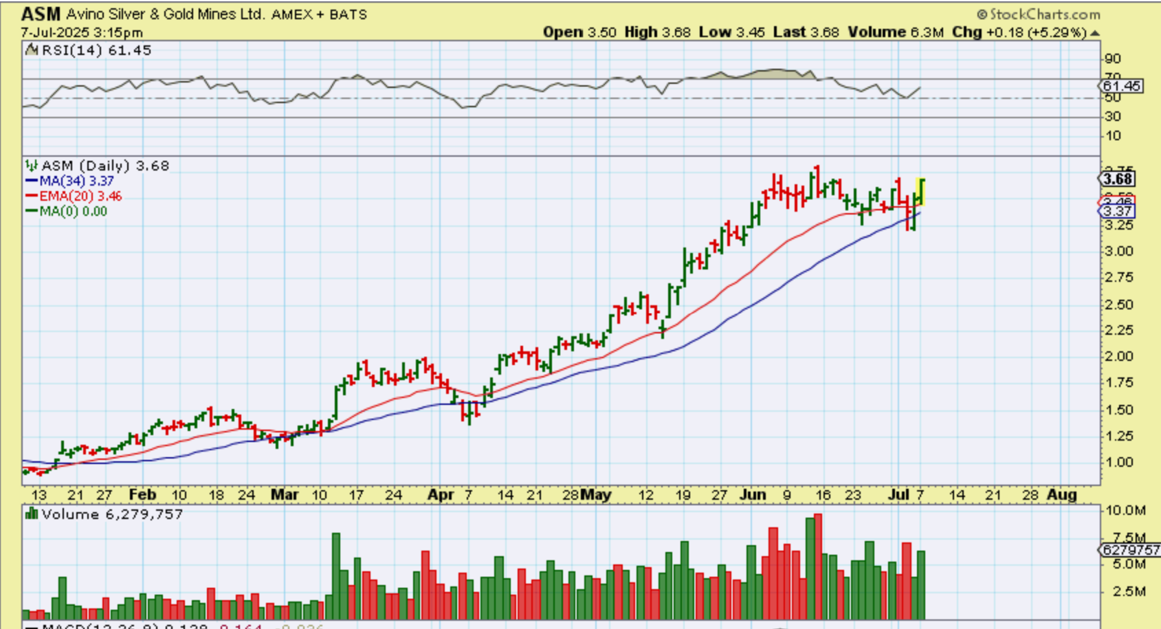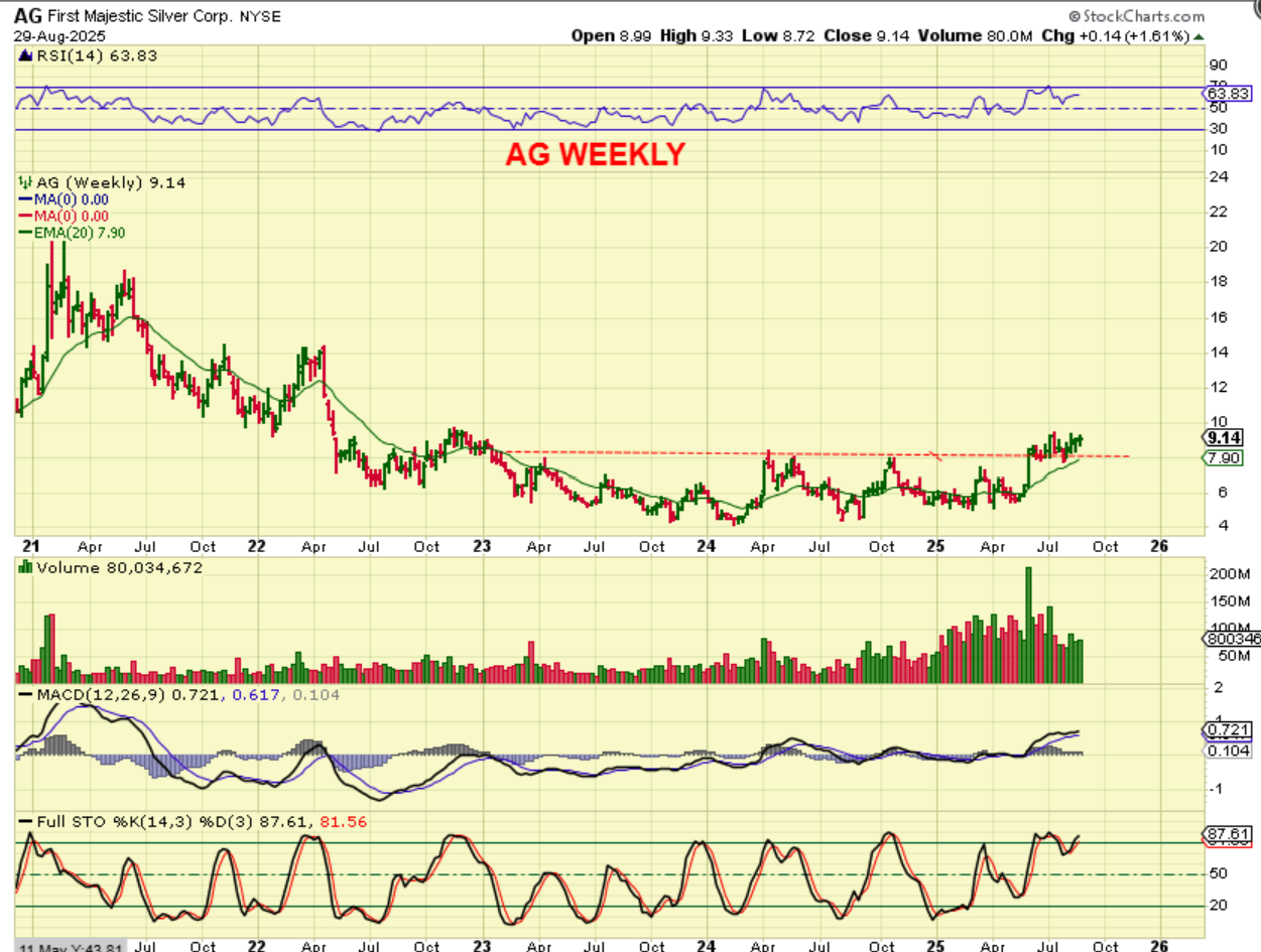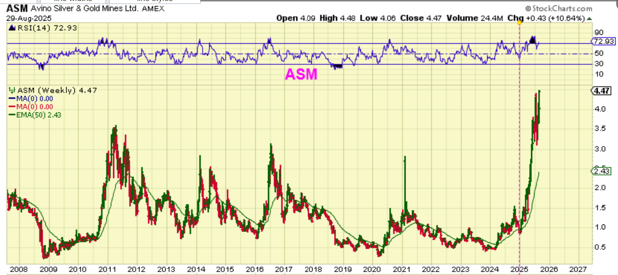 And ASM was also one that I have pointed out over the last year as a favorite too. It was running steadily in early 2025 and then started consolidating up high in July. This chart was posted then. How does the weekly chart of ASM look??