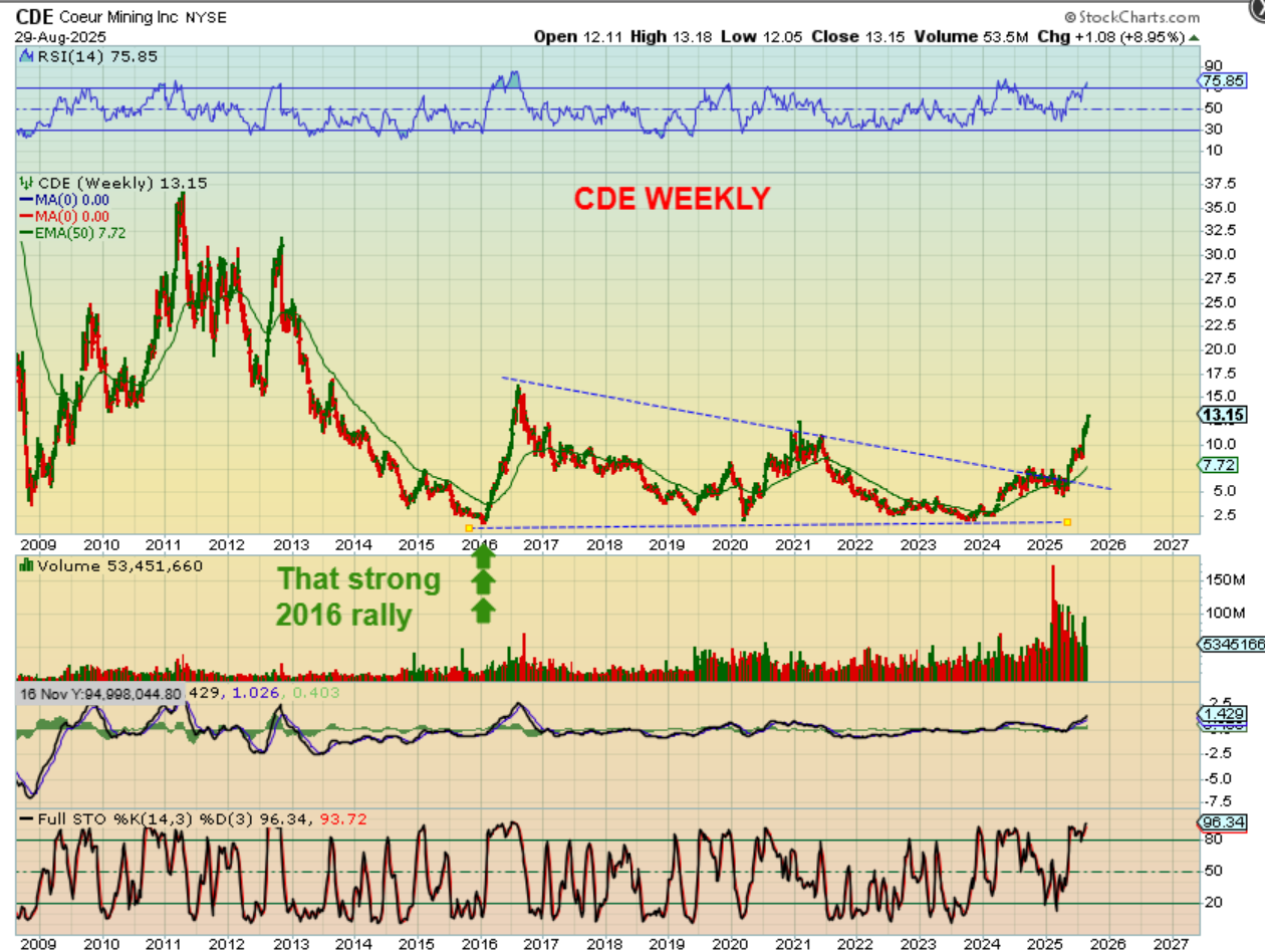 CDE ran from $5 to $13 since April. That is almost a triple! This is similar to that run in 2026, and now with this run, we have the breakout of the wedge and a rally. Next, we’ll cover a lagger…