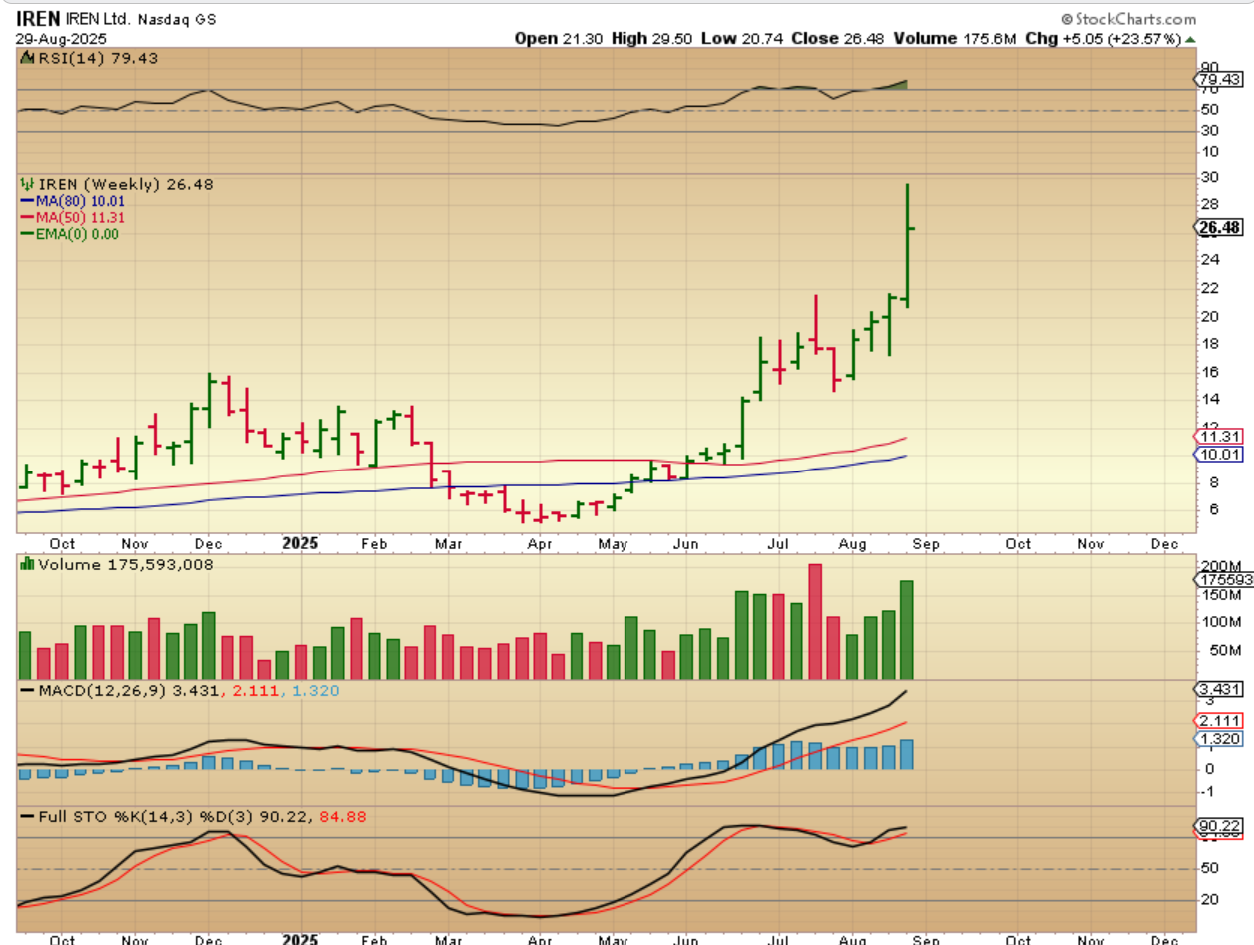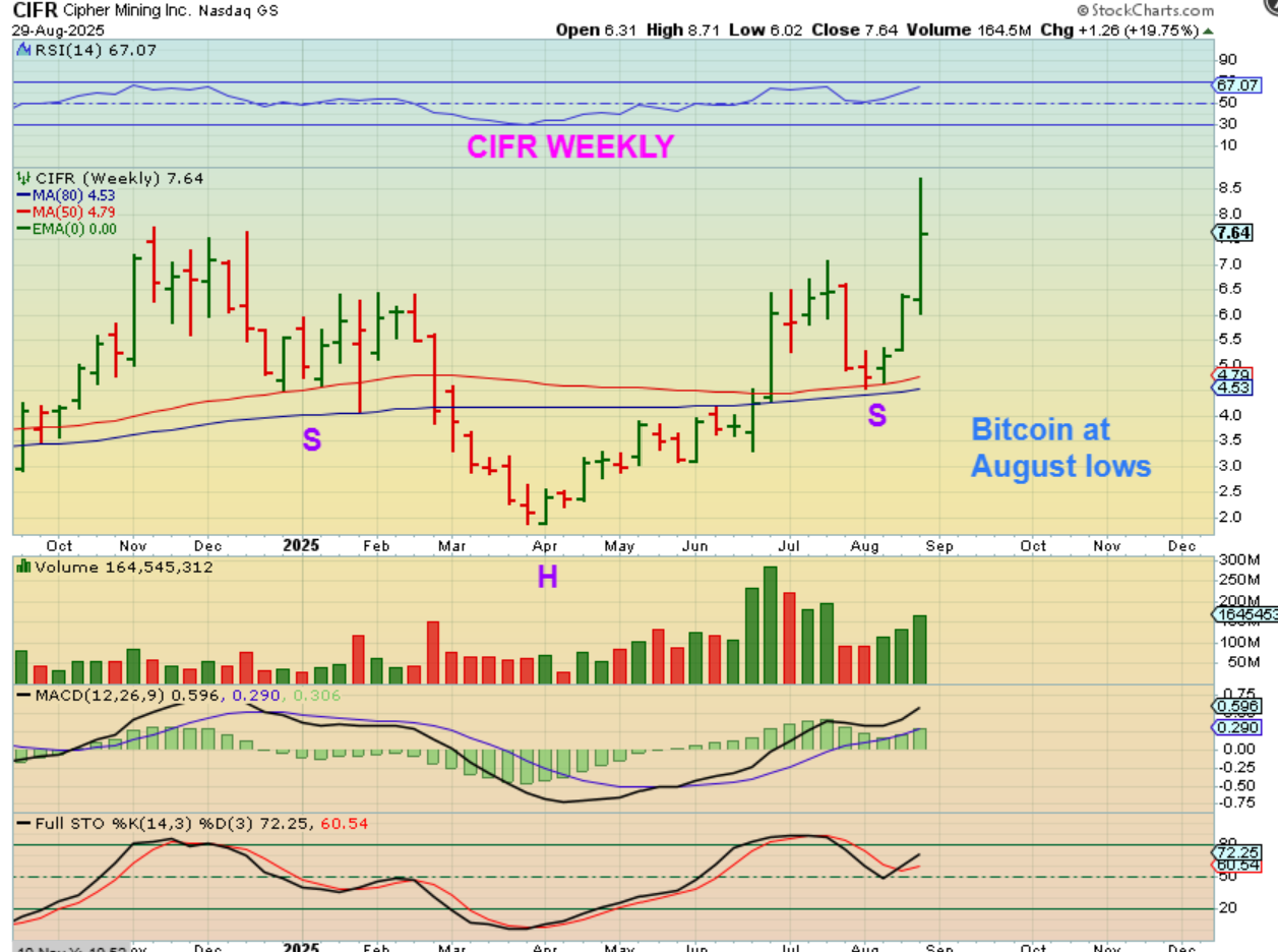 CIFR WEEKLY – CIFR almost doubled in 3 weeks? It ws up 20% last week, so this is NOT selling off in August with Bitcoin.