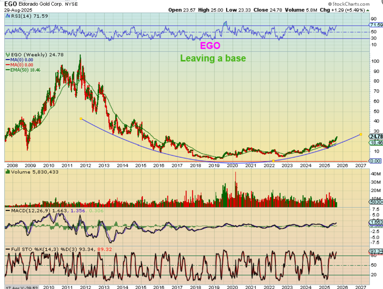 EGO WEEKLY: What’s the problem, right? 🙂 Is this even the same company as the chart above?  🙂  In 2025 alone EGO ran from $13 to $25. It certainly has been choppy, as seen on the daily chart above, but the weekly gives us a Bull Run over time. Not only that, but let me show you something really interesting about this bull run…