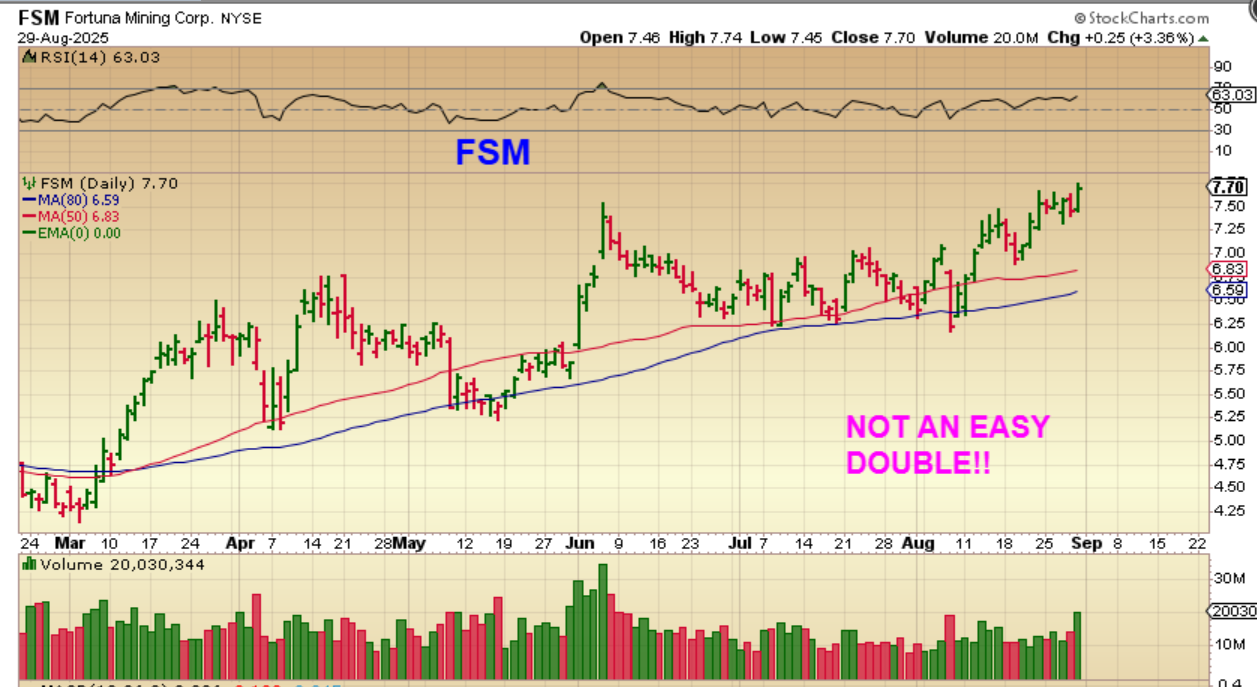 FSM has chopped higher and it also has almost doubled in 2025,  but this was NOT an easy ride. Take a look at this weekly chart, and then we’ll look at the daily chart.