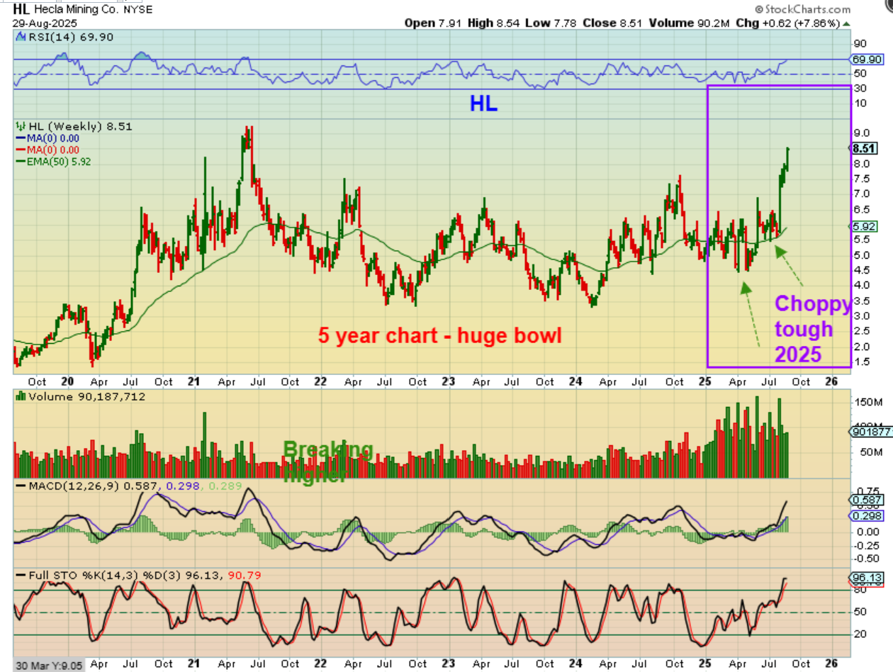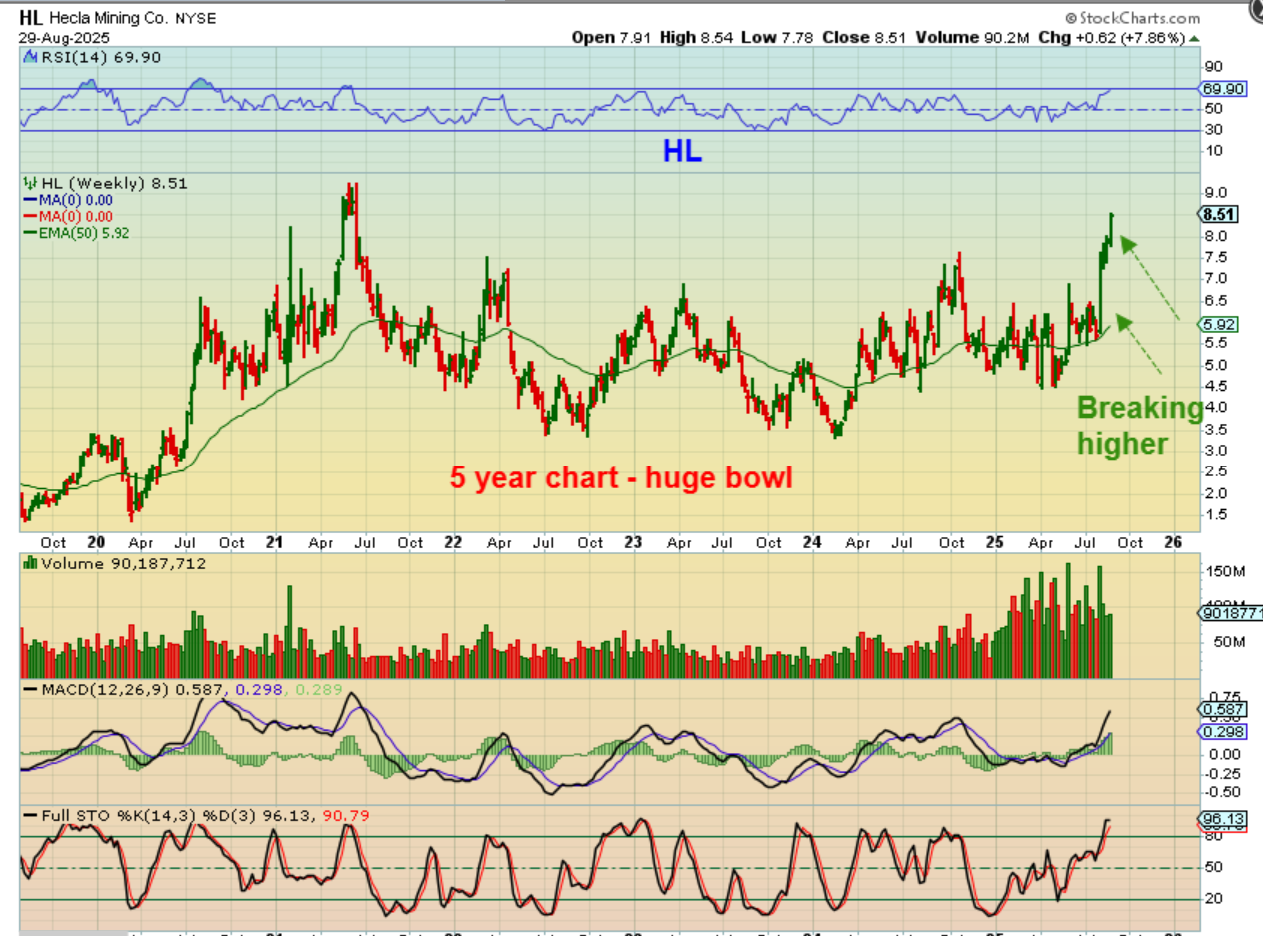 So basically we see Silver in a 4th daily cycle and some silver stocks don’t care, they ran higher. HL shot up again last week.