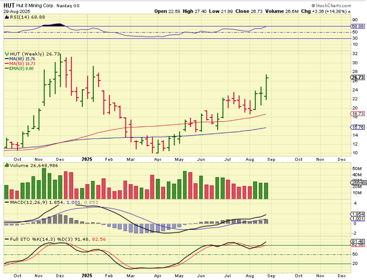 HUT WEEKLY – HUT was up another 14% and is not at the lows like Bitcoin in August.