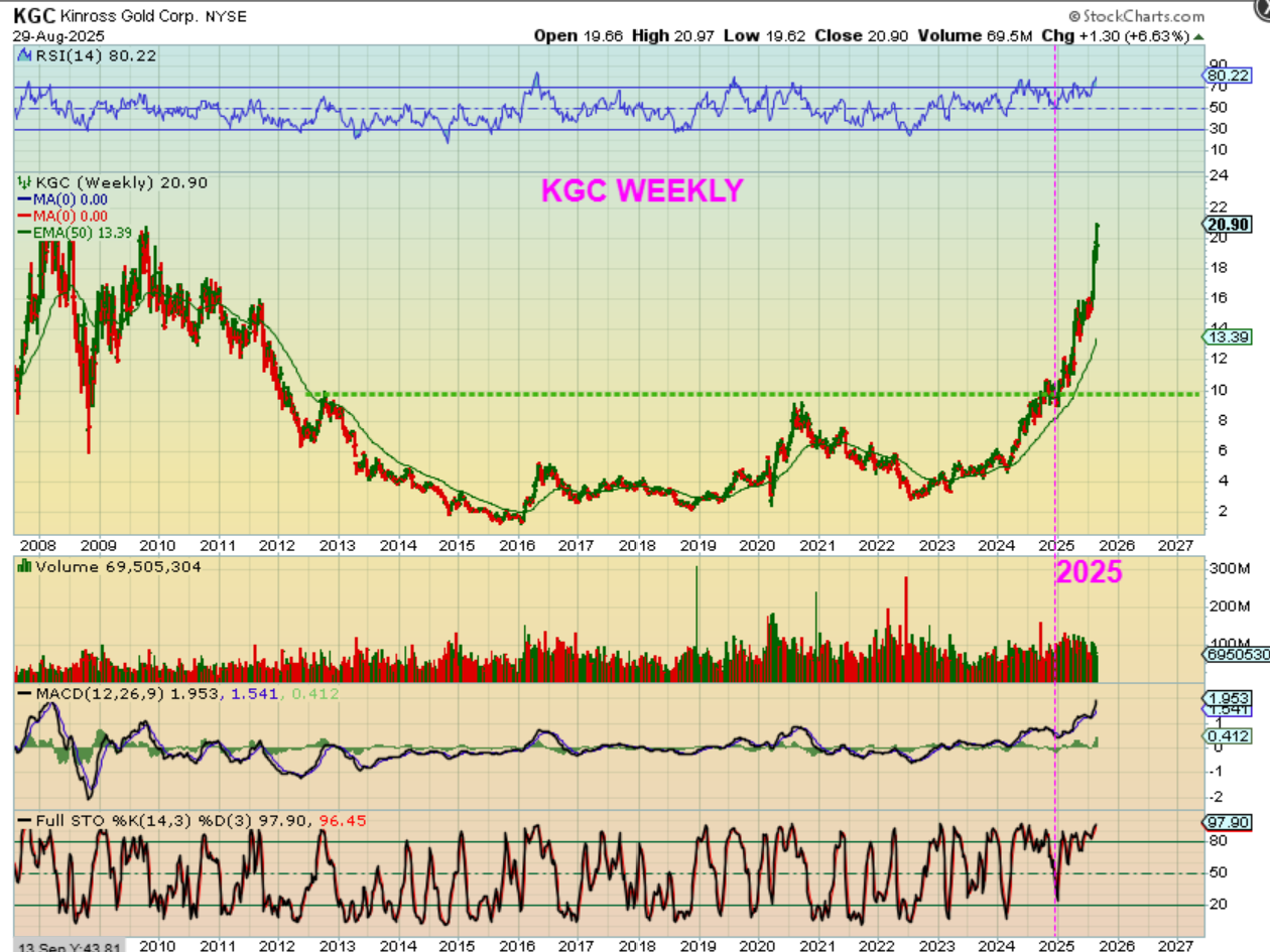 WOW! KGC looks to be going parabolic on a weekly chart and all of that sideways chop this year fades away.