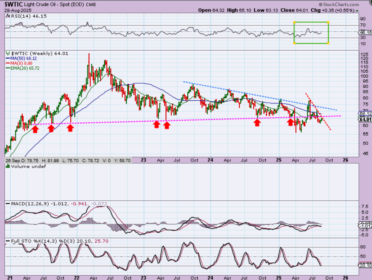 WTIC – Oil broke down and tried to recovered when the war with Iran started, but it lost support. This Might be a bullish wedge formation now.  Why I do I think that?  Oil stocks have been a bit stronger than Oil, so it does make me wonder if Oil will gain strength. Let’s look at the XOP & The XLE…