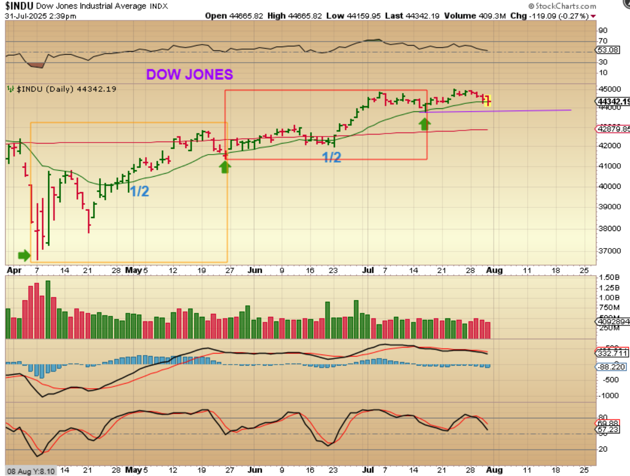 DOW JONES – Starting with the Dow, we looked at 2 daily cycles and that last dip seemed to be the dcl. It showed up on the Dow better than in other areas, so I am showing you that here, and…